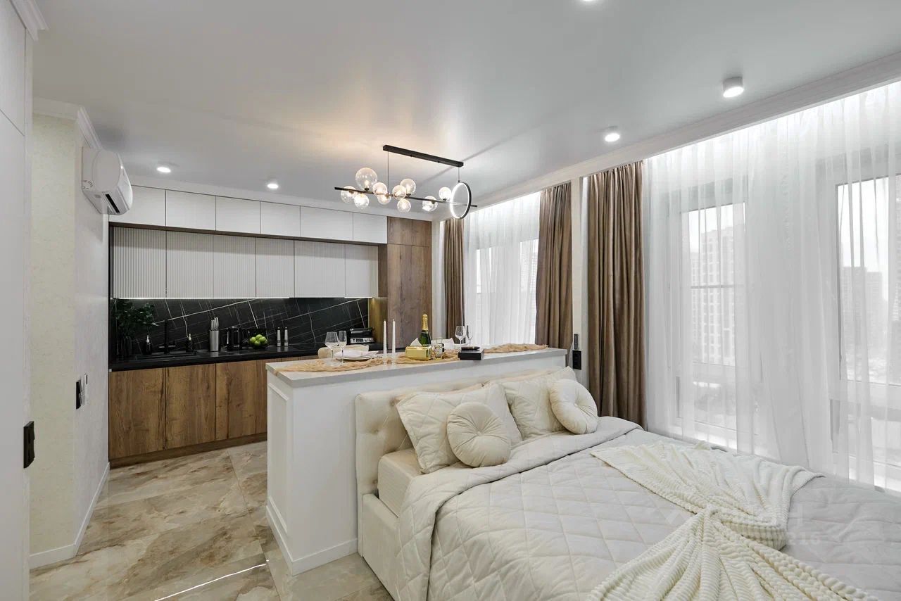 • Общая площадь:36 м² • Этаж: 10 из 33 • Высота потолков: от 2.60 м ощущение простора и света! • Отделка: Дизайнерская квартира выполнена из дорогостоящих и высококачественных материалов, полностью продается с мебелью и техникой. • Тип дома: Монолитный гарантия долговечности, отличной шумоизоляции и тепла.