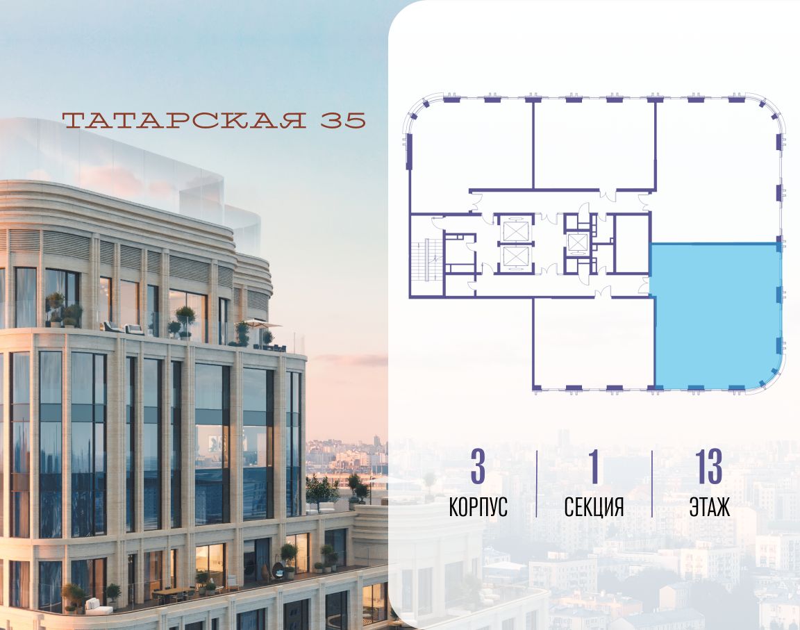 ТАТАРСКАЯ, 35 - новая архитектурная доминанта Замоскворечья, достопримечательность на фотопанорамах исторического центра Москвы. Элитный дом, созданный для тех, кто умеет смотреть далеко вперед, мыслить масштабно и воплощать собственный сценарий жизни.