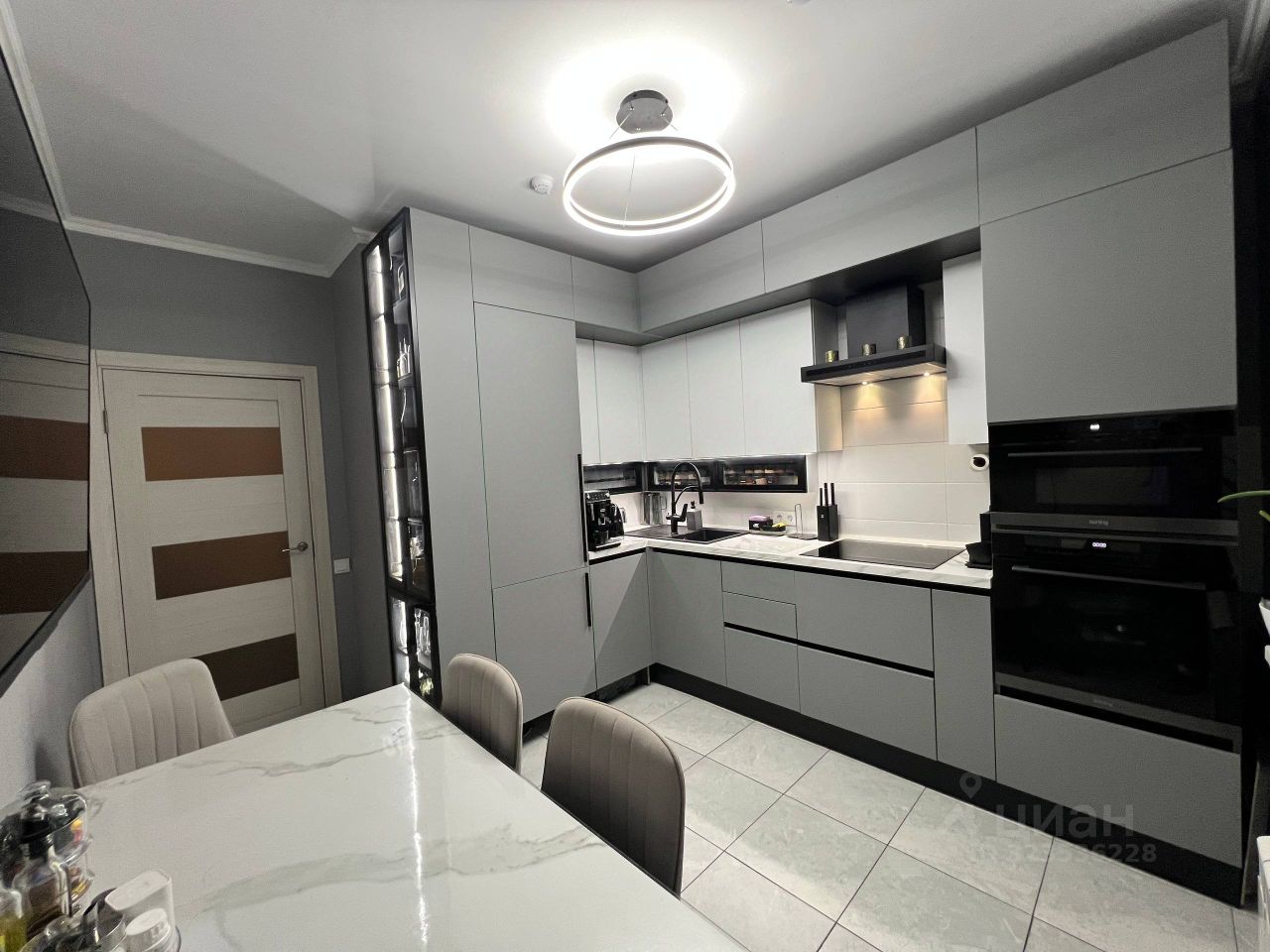С 18-ого этажа открывается шикарный вид на Юг и Юго-Запад Москвы. Встроенная кухня MDF с дорогой техникой: духовой шкаф, микроволновая печь, посудомоечная машина, холодильник No Frost, вытяжка. Сантехника Lemark. Стоимость кухни с техникой составила ~ 1,2 млн.р.
