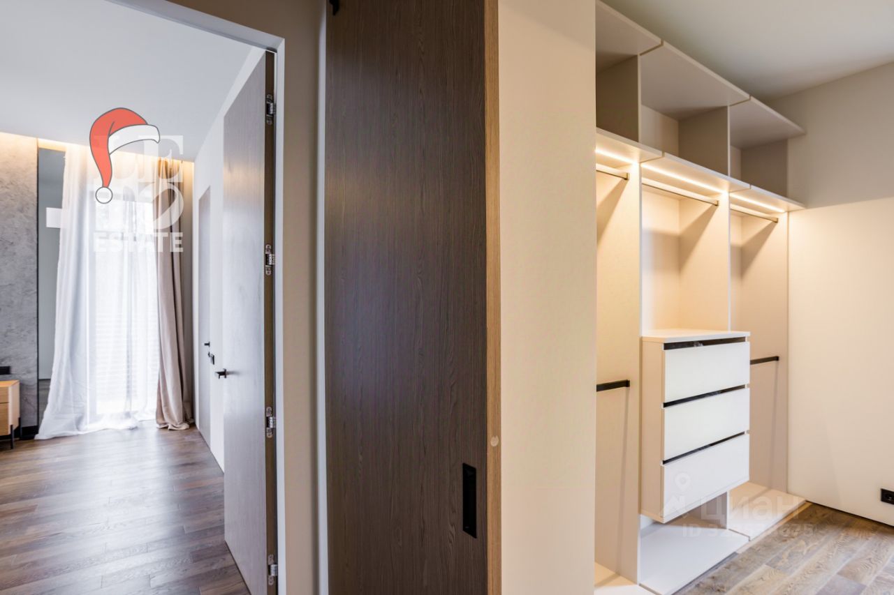 Планировка: Прихожая, гардеробная, гостевой санузел, кухня-гостиная-столовая, гостевой блок: спальня, санузел с душевой, гостиная, кухня, гардеробная, постирочная, котельная. Зона отдыха с душевой и сауной. Три спальни со своими санузлами. Мастер-блок: спальня, гардеробная, санузел с ванной и душевой.