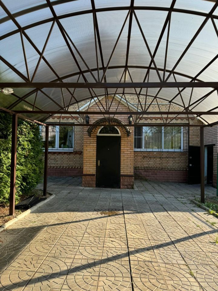 Добротный кирпичный дом со всеми центральными коммуникациями, гаражом, навесом для машины, бассейном (капитальным), баней, летней кухней и гостевым домом!!! Коммуникации центральные: канализация, газ, водопровод, дополнительно скважина 120 м (насос на высоте 80 м), очистное оборудование для воды (3 капсулы), электричество- 320 В, 3 фазы, газовый котел ''Аристон'' (Италия) двухконтурный. Дом. 1) фундамент из бетонных блоков высотой 3,5 м. подвал сухой, в нем стоят фильтры: очистка воды (можно дополнительно использовать для хранения консервации). 2) стены в 2,5 кирпича (65 см) 3) планировка: 1 этаж-прихожая, балкон, 2 спальни, санузел с душевой кабиной, гостиная (из двух зон), кухня, второй выход во двор со своей прихожей.