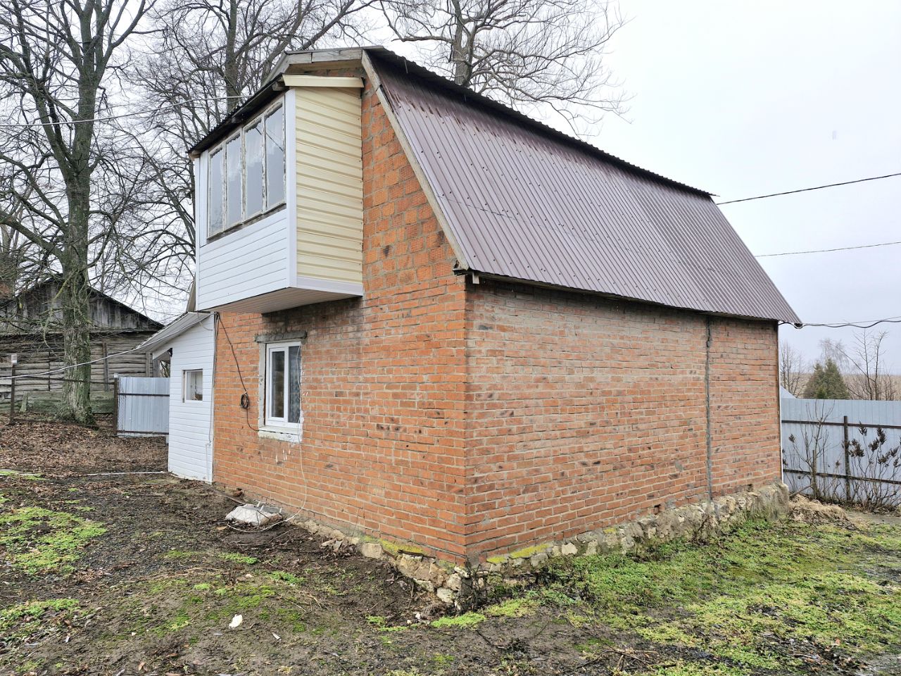 2 комнаты — отлично под гостевой дом, мастерскую, кабинет или сдачу. Ограждение: сетка-рабица + профлист. Удобный заезд для автомобиля. Участок позволяет разместить всё: зону барбекю, детскую площадку, огород, дополнительные постройки.