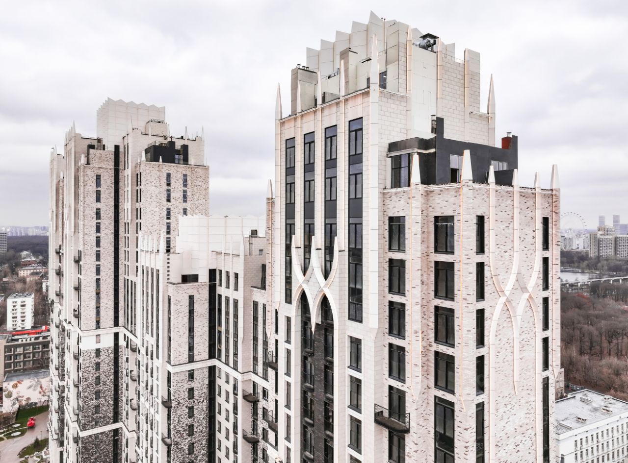 Архитектура проекта - современное прочтение торжественного и изящного стиля ар-деко, который, как и сталинский ампир, сформировался в результате развития идей чикагской школы. В доме 6 секций, 115 вариантов продуманных планировочных решений - от уютных студий до просторных пентхаусов с дровяным камином. В каждой квартире предусмотрен полный комплекс систем комфорта: принудительная центральная вентиляция с фильтрацией воздуха, очистка воды до уровня питьевой, круглогодичное горячее водоснабжение, быстрые бесшумные лифты, которые идут прямо в паркинг, продуманная подготовка под кондиционирование и другие технологические решения.