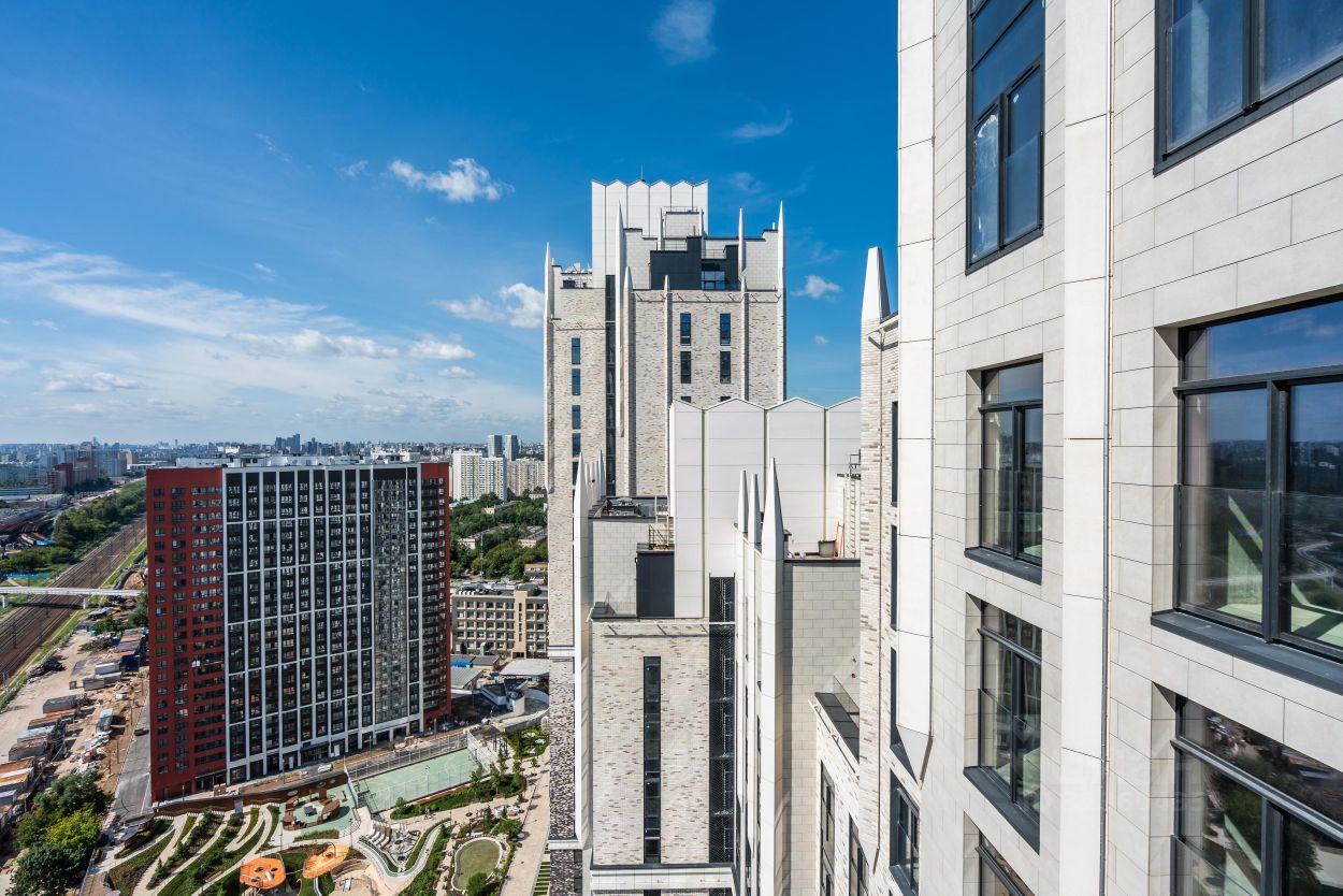 Архитектура проекта - современное прочтение торжественного и изящного стиля ар-деко, который, как и сталинский ампир, сформировался в результате развития идей чикагской школы. В доме 6 секций, 115 вариантов продуманных планировочных решений - от уютных студий до просторных пентхаусов с дровяным камином. В каждой квартире предусмотрен полный комплекс систем комфорта: принудительная центральная вентиляция с фильтрацией воздуха, очистка воды до уровня питьевой, круглогодичное горячее водоснабжение, быстрые бесшумные лифты, которые идут прямо в паркинг, продуманная подготовка под кондиционирование и другие технологические решения.