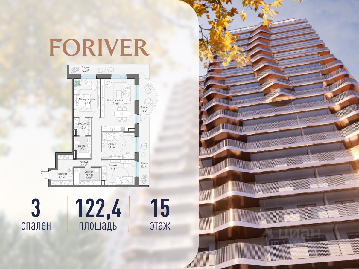 Прямая продажа от застройщика. В жилом квартале, расположенном в Даниловском районе Москвы, продаётся 3-комнатная квартира площадью 122.40 кв.м без отделки. Квартира расположена на 15 этаже 19-этажного дома, корпус Line 4, в жилом квартале бизнес-класса Foriver.