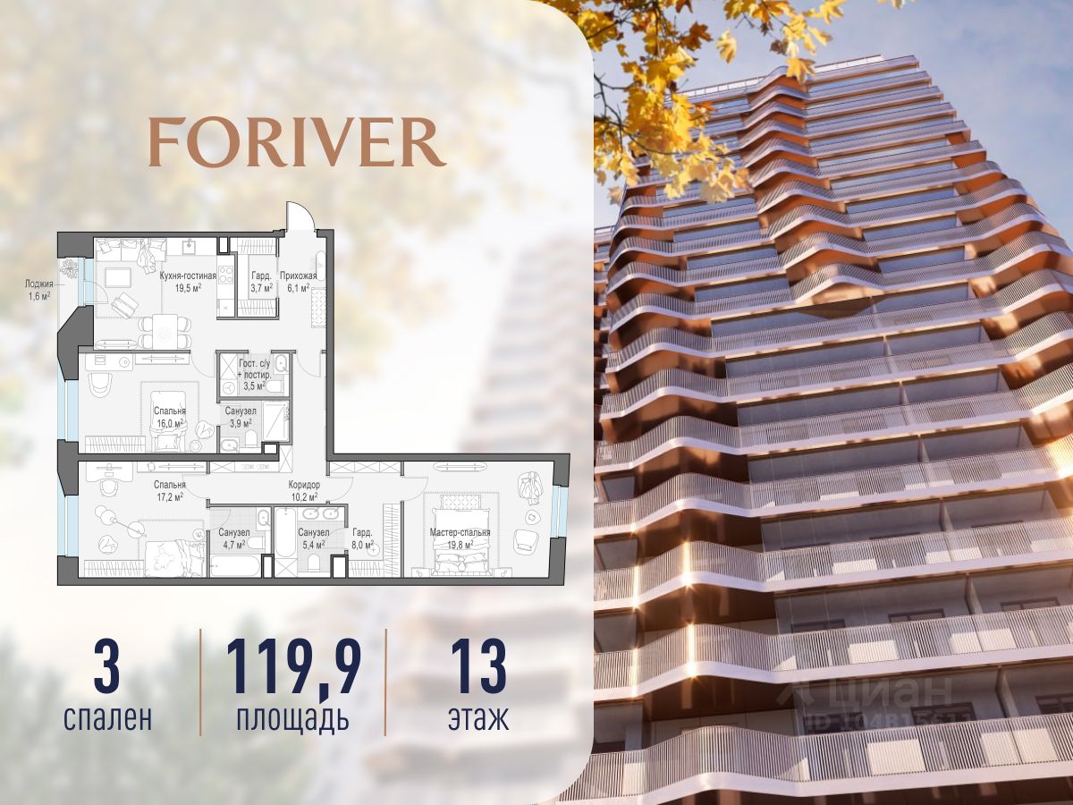 Прямая продажа от застройщика. В жилом квартале, расположенном в Даниловском районе Москвы, продаётся 3-комнатная квартира площадью 119.90 кв.м без отделки. Квартира расположена на 13 этаже 16-этажного дома, корпус Line 2, в жилом квартале бизнес-класса Foriver.