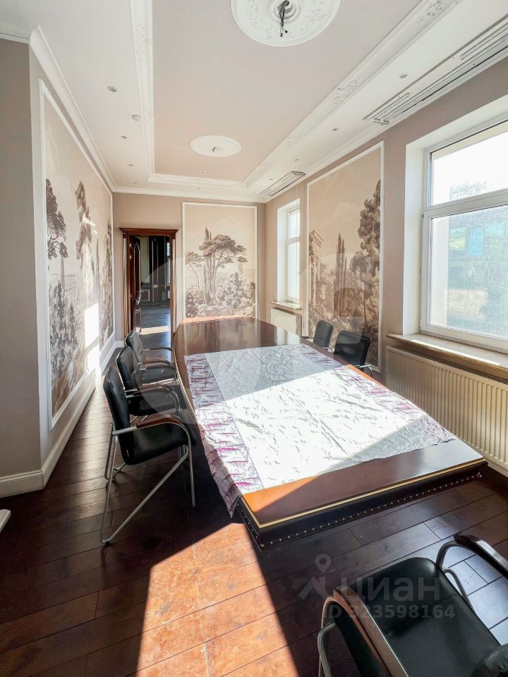 Особняк общей площадью 969 м² включает цокольный этаж (253,2 м²), первый этаж (237,9 м²), второй этаж (251,1 м²) и третий этаж (226,8 м²). Планировка смешанная: просторная зона ресепшн, открытые пространства, изолированные кабинеты, переговорные комнаты, серверная и подсобные помещения. На каждом этаже оборудованы мини-кухни и санузлы. Высота потолков 4,5 метра, на третьем этаже VIP-зона с премиальной отделкой.