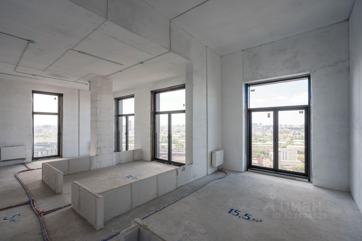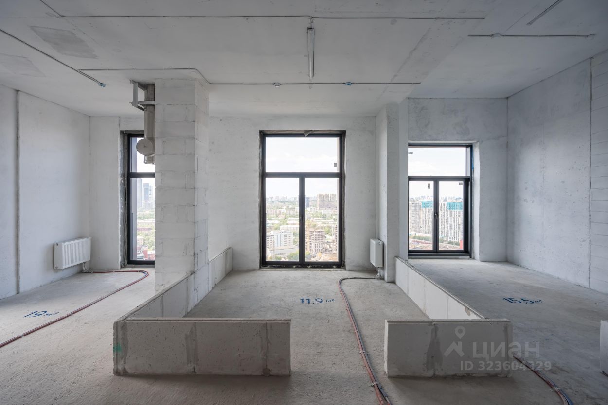 Двуспальная квартира с угловым остеклением в кухне-гостиной и панорамными окнами в спальнях. Виды позволят наслаждаться закатом и любоваться огнями ночного города.