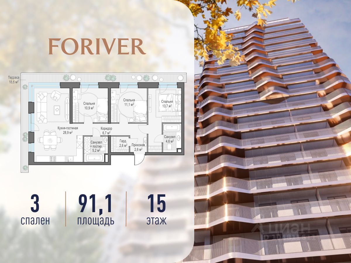 В Foriver представлены готовые просторные квартиры по привлекательной цене: лоты с видами на Москву-реку, пентхаусы с каминами, террасами и потолками высотой до 6,8 м, варианты на втором этаже с террасами, таунхаусы с отдельными входами.