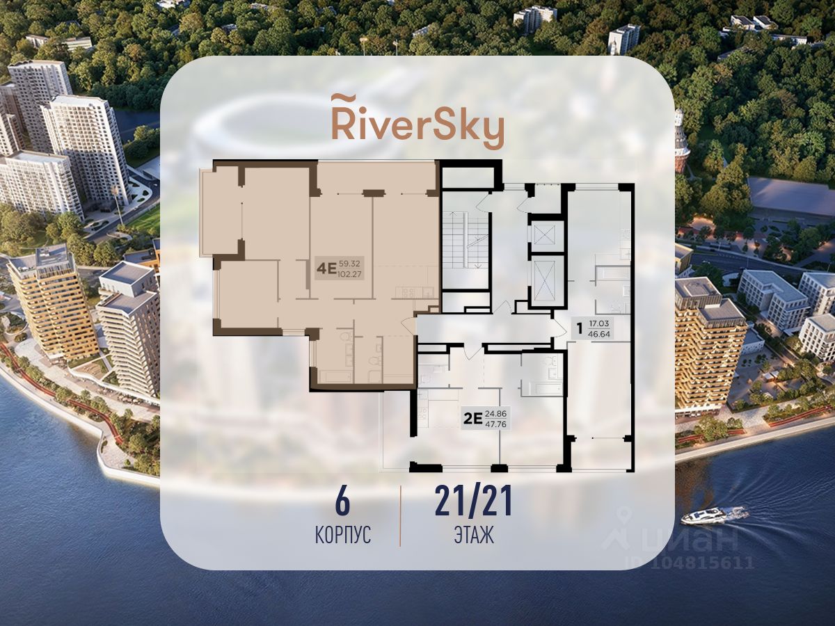 Прямая продажа от застройщика. В жилом квартале, расположенном в Даниловском районе Москвы, продаётся 4-комнатная квартира площадью 100.80 кв.м без отделки. Квартира расположена на 21 этаже 21-этажного дома, корпус 6, в жилом квартале бизнес-класса RiverSky, который является частью жилого квартала FORIVER.