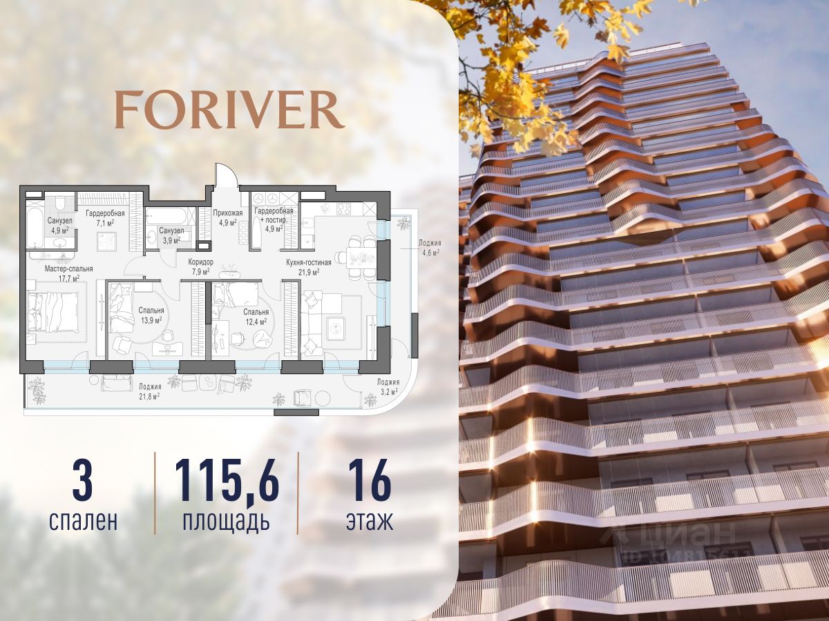 Прямая продажа от застройщика. В жилом квартале, расположенном в Даниловском районе Москвы, продаётся 3-комнатная квартира площадью 115.60 кв.м без отделки. Квартира расположена на 16 этаже 19-этажного дома, корпус Line 1, в жилом квартале бизнес-класса Foriver.