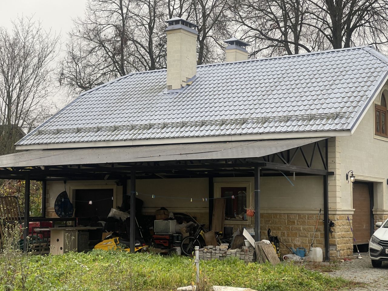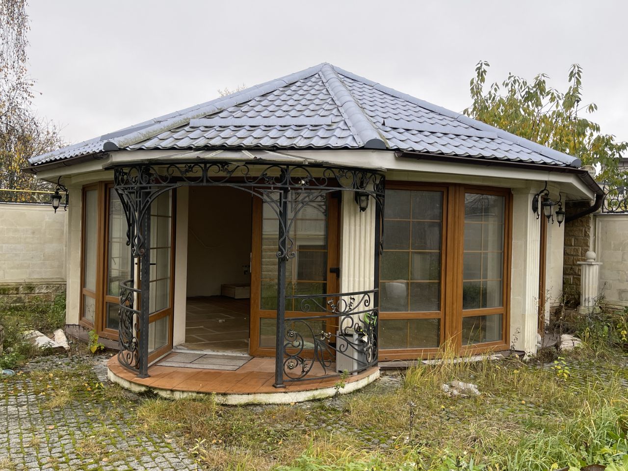 На участке — гараж и летняя кухня.