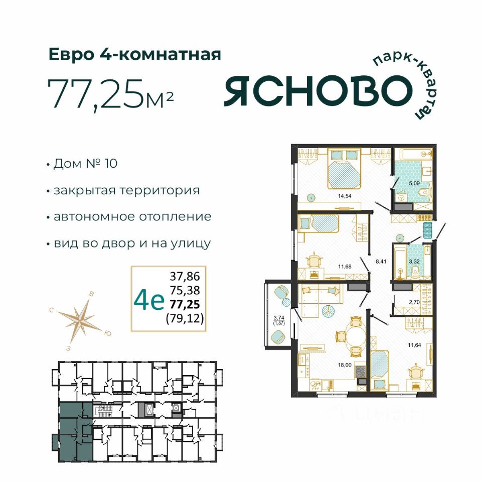 Общая площадь77,25 м2