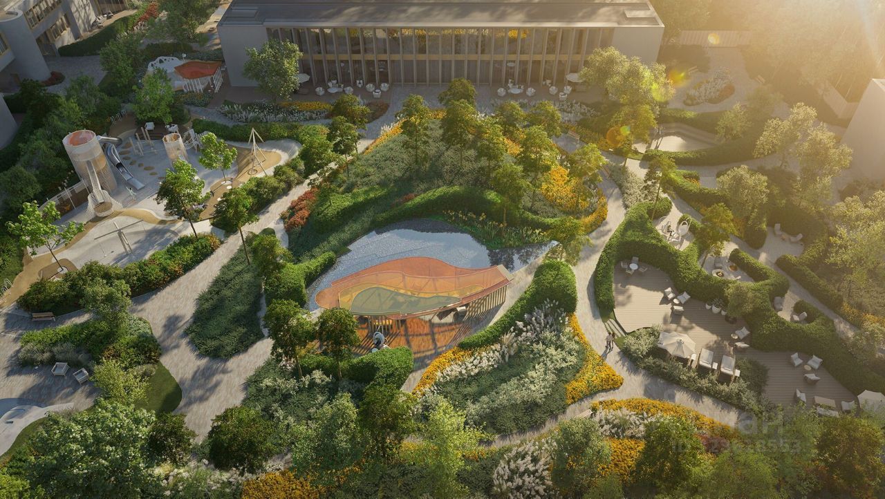 Для спокойного досуга на природе в своём парке созданы пейзажный пруд с витражным навесом и террасой, тихие зоны у воды, оазисы комфорта - зелёные комнаты с мягкой мебелью и шезлонгами. Парк располагает к прогулкам, в нём много маршрутов вокруг арт-объектов, есть пряный сад с ароматными травами. Здесь можно устроить семейный пикник, почитать книгу в тени деревьев и забыть о том, что живёте в центре города, подарив себе полноценный отдых на природе.
