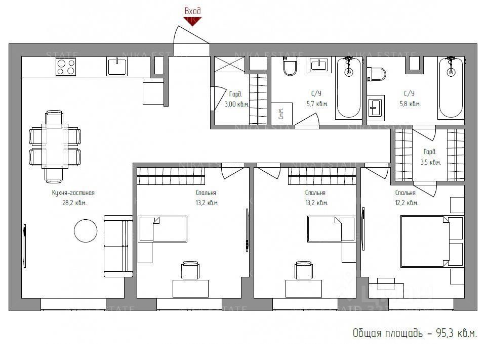 Общая площадь95,3 м2