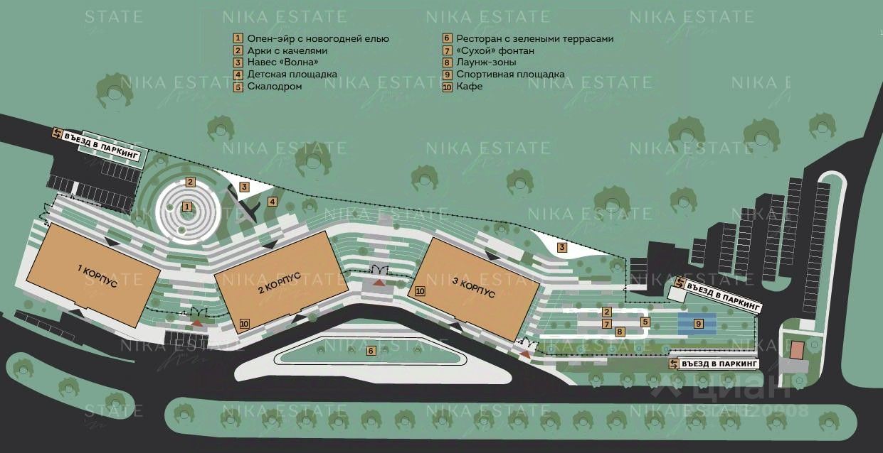 -трехуровневый подземный паркинг на 310 машиномест.