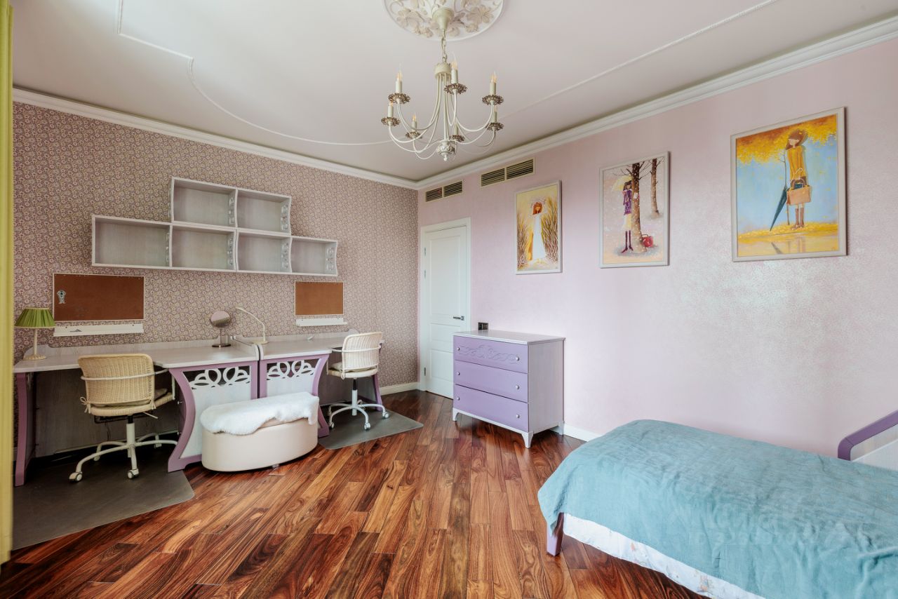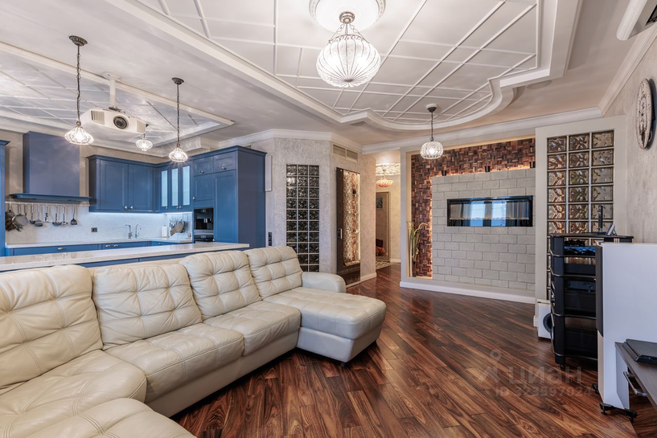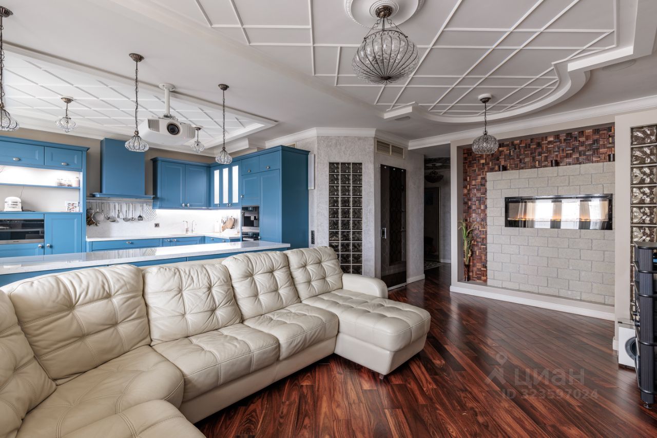 Продается просторная квартира с дизайнерским ремном в ЖК бизнес-класса ''Ривер-Хаус''. Планировка: кухня-гостиная (44,4 м2), спальня с выходом в гардеробную (17,4 м2), детская (22,5 м2), кабинет (19,8 м2), 2 санузла, постирочная, 2 гардеробные, лоджия 10м2 с панорамным остеклением. Интерьер продуман до мелочей, гармонично сочетаясь с современными тенденциями дизайна и элементами декора. Использованы качественные материалы: пол палисандр, плитка керамогранит с подогревом, центральная система кондиционирования, интересные предметы декора. КУХНЯ-ГОСТИНАЯ: встроенная кухня Nolte (Германия) с техникой Miele. Посудомоечная машина, кофемашина, духовка, совмещенная с микроволновой печью, пароварка, холодильник, морозильная камера. Телевизор с аудиосистемой, проектором и домашним кинотеатром, электрический камин с подогревом, раздвижной диван с пультом управления. СПАЛЬНЯ: спальня с выходом в гардеробную комнату и на лоджию с панорамным остеклением. Прекрасное место для отдыха с великолепным видом. На лоджии панорамные окна, мозаика с подсветкой. ДЕТСКАЯ: встроенная мебель на заказ, двухъярусная кровать, шкафы, 2 письменных стола. КАБИНЕТ с мебелью из массива дуба и выходом на лоджию. ПОСТИРОЧНАЯ со стиральной и сушильной машиной, встроенные шкафы, полки. 2 САНУЗЛА: душевая кабина с тропическим душем, джакузи с гидромассажем, с подсветкой, 2 раковины, биде. Потолки 3,1 м добавляют помещению воздушности и лёгкости, создавая атмосферу уюта и комфорта.