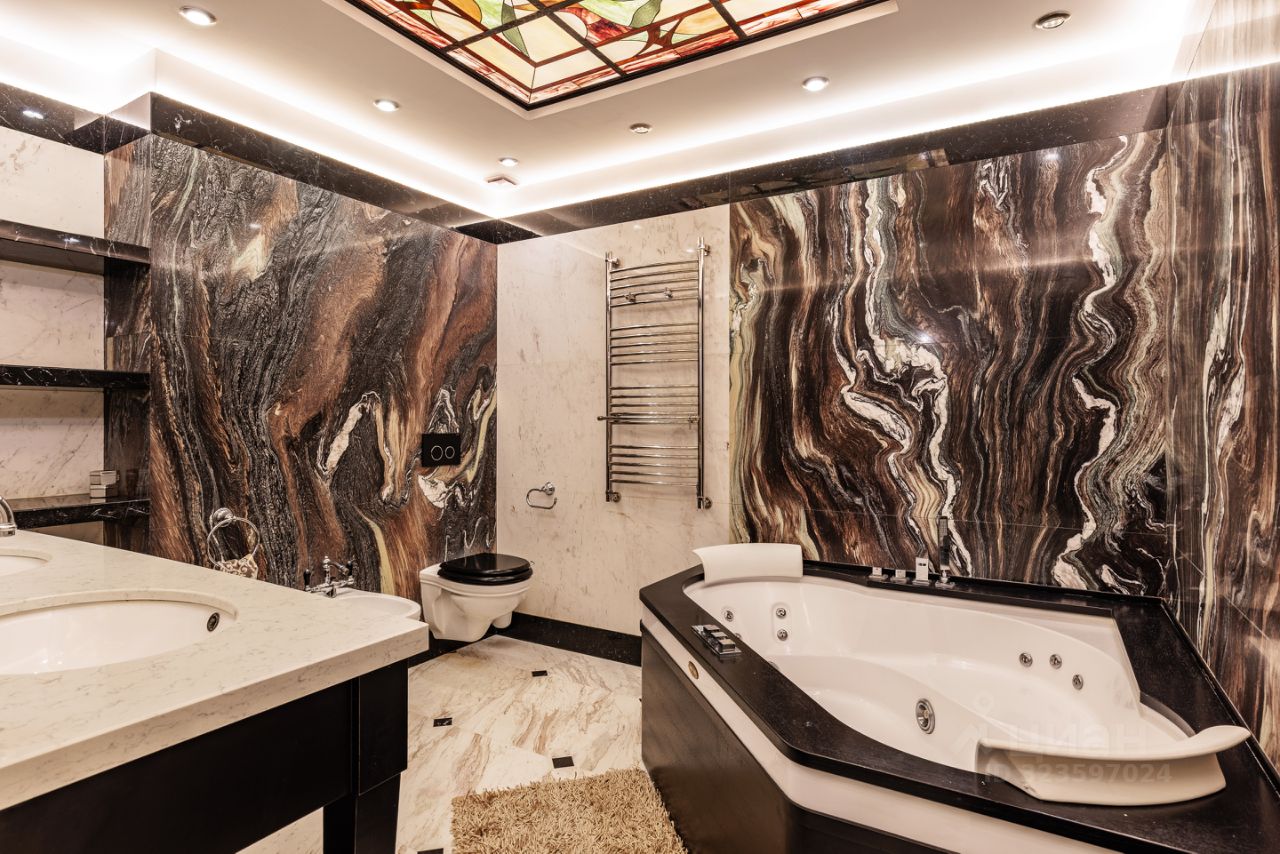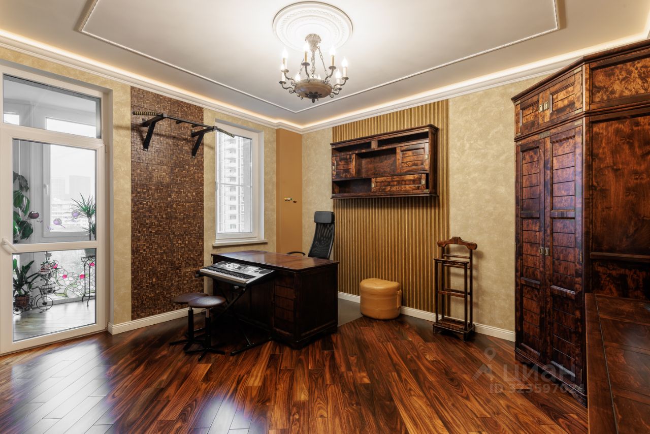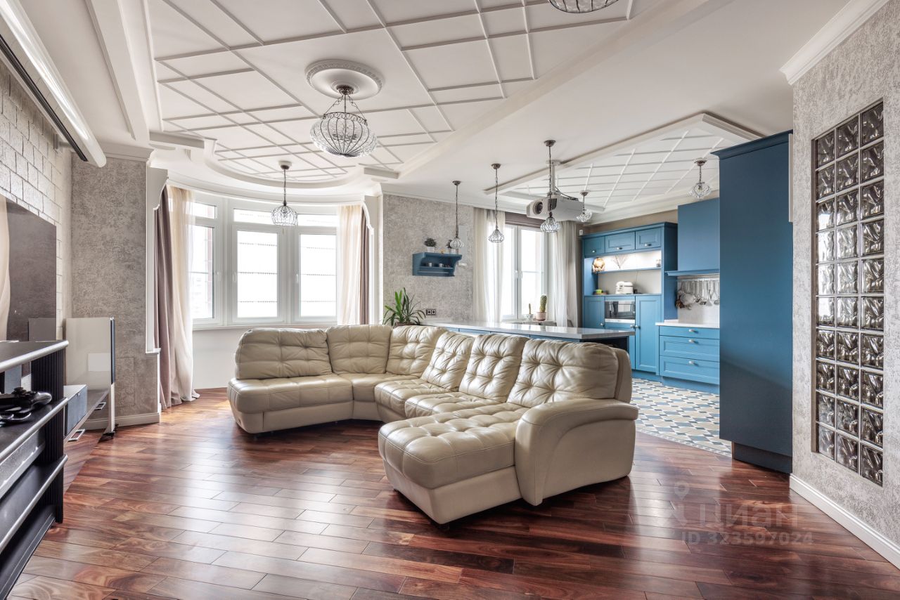 Продается просторная квартира с дизайнерским ремном в ЖК бизнес-класса ''Ривер-Хаус''. Планировка: кухня-гостиная (44,4 м2), спальня с выходом в гардеробную (17,4 м2), детская (22,5 м2), кабинет (19,8 м2), 2 санузла, постирочная, 2 гардеробные, лоджия 10м2 с панорамным остеклением. Интерьер продуман до мелочей, гармонично сочетаясь с современными тенденциями дизайна и элементами декора. Использованы качественные материалы: пол палисандр, плитка керамогранит с подогревом, центральная система кондиционирования, интересные предметы декора. КУХНЯ-ГОСТИНАЯ: встроенная кухня Nolte (Германия) с техникой Miele. Посудомоечная машина, кофемашина, духовка, совмещенная с микроволновой печью, пароварка, холодильник, морозильная камера. Телевизор с аудиосистемой, проектором и домашним кинотеатром, электрический камин с подогревом, раздвижной диван с пультом управления. СПАЛЬНЯ: спальня с выходом в гардеробную комнату и на лоджию с панорамным остеклением. Прекрасное место для отдыха с великолепным видом. На лоджии панорамные окна, мозаика с подсветкой. ДЕТСКАЯ: встроенная мебель на заказ, двухъярусная кровать, шкафы, 2 письменных стола. КАБИНЕТ с мебелью из массива дуба и выходом на лоджию. ПОСТИРОЧНАЯ со стиральной и сушильной машиной, встроенные шкафы, полки. 2 САНУЗЛА: душевая кабина с тропическим душем, джакузи с гидромассажем, с подсветкой, 2 раковины, биде. Потолки 3,1 м добавляют помещению воздушности и лёгкости, создавая атмосферу уюта и комфорта.