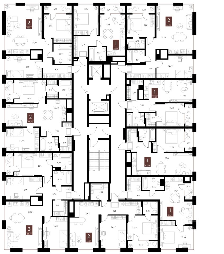 Жилая площадь39,7 м2