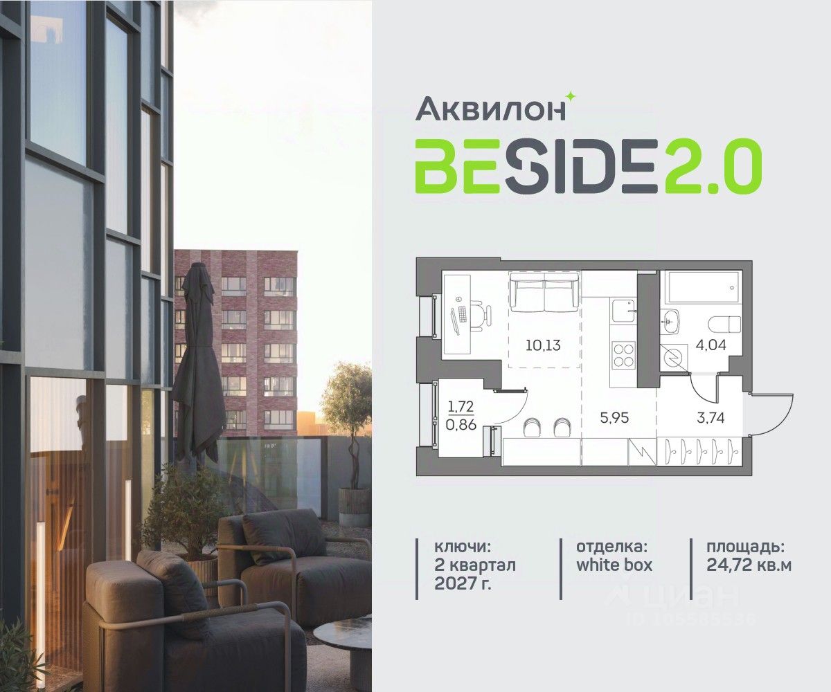 Продажа от застройщика. Продается просторная студия на 19 этаже современного жилого комплекса Beside 2.0. Вид из окон: на улицу. Срок сдачи: 2 кв. 2027 г. Квартира с лоджией.
