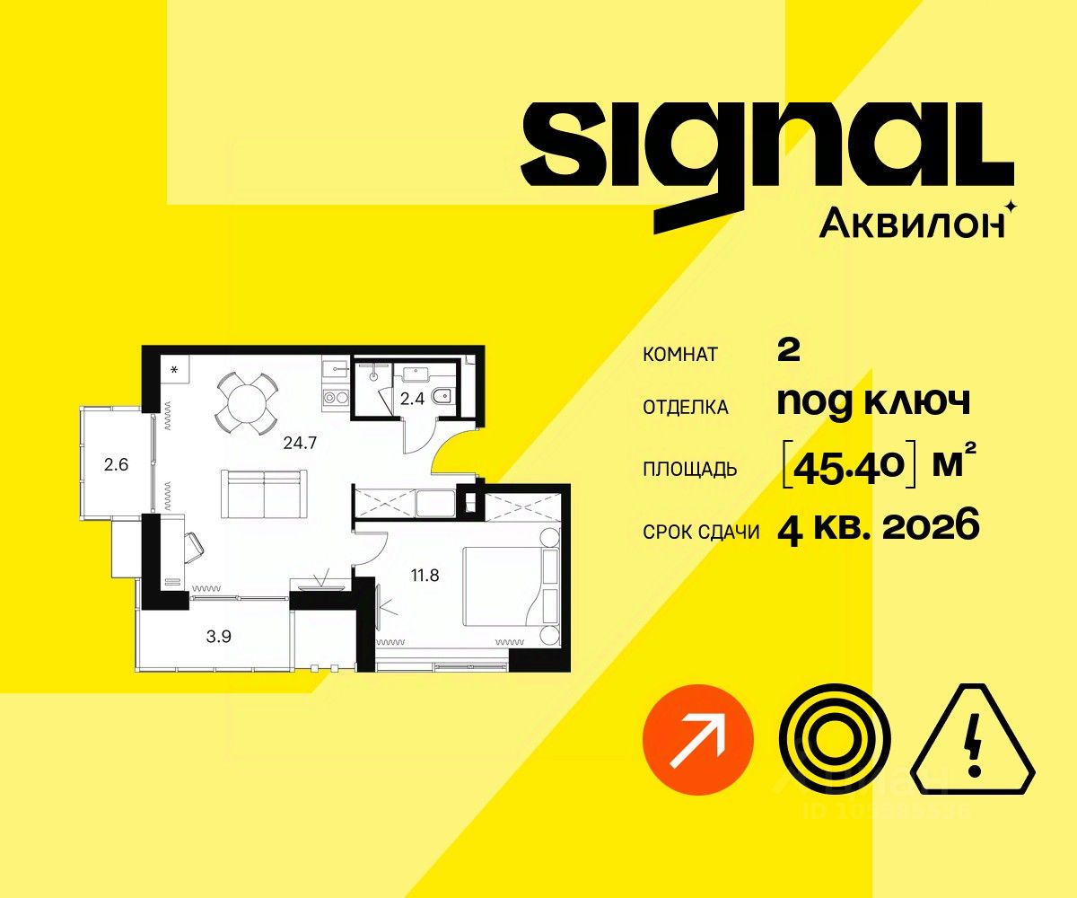 Продажа от застройщика. Продаются 2-комнатные апартаменты на 18 этаже 23-этажного современного апарт-комплекса Signal. Срок сдачи: 4 кв. 2026 г.
