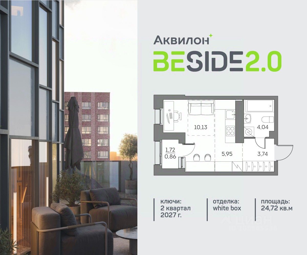Продажа от застройщика. Продается просторная студия на 20 этаже современного жилого комплекса Beside 2.0. Вид из окон: на улицу. Срок сдачи: 2 кв. 2027 г. Квартира с лоджией.