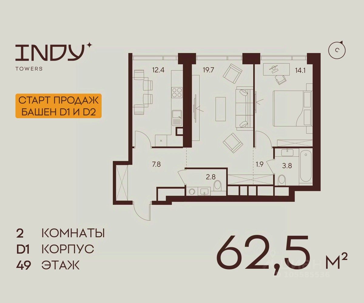 Продажа от застройщика. Продается просторная 2-комнатная квартира на 49 этаже жилого комплекса Indy Towers. Срок сдачи: 3 кв. 2029 г.