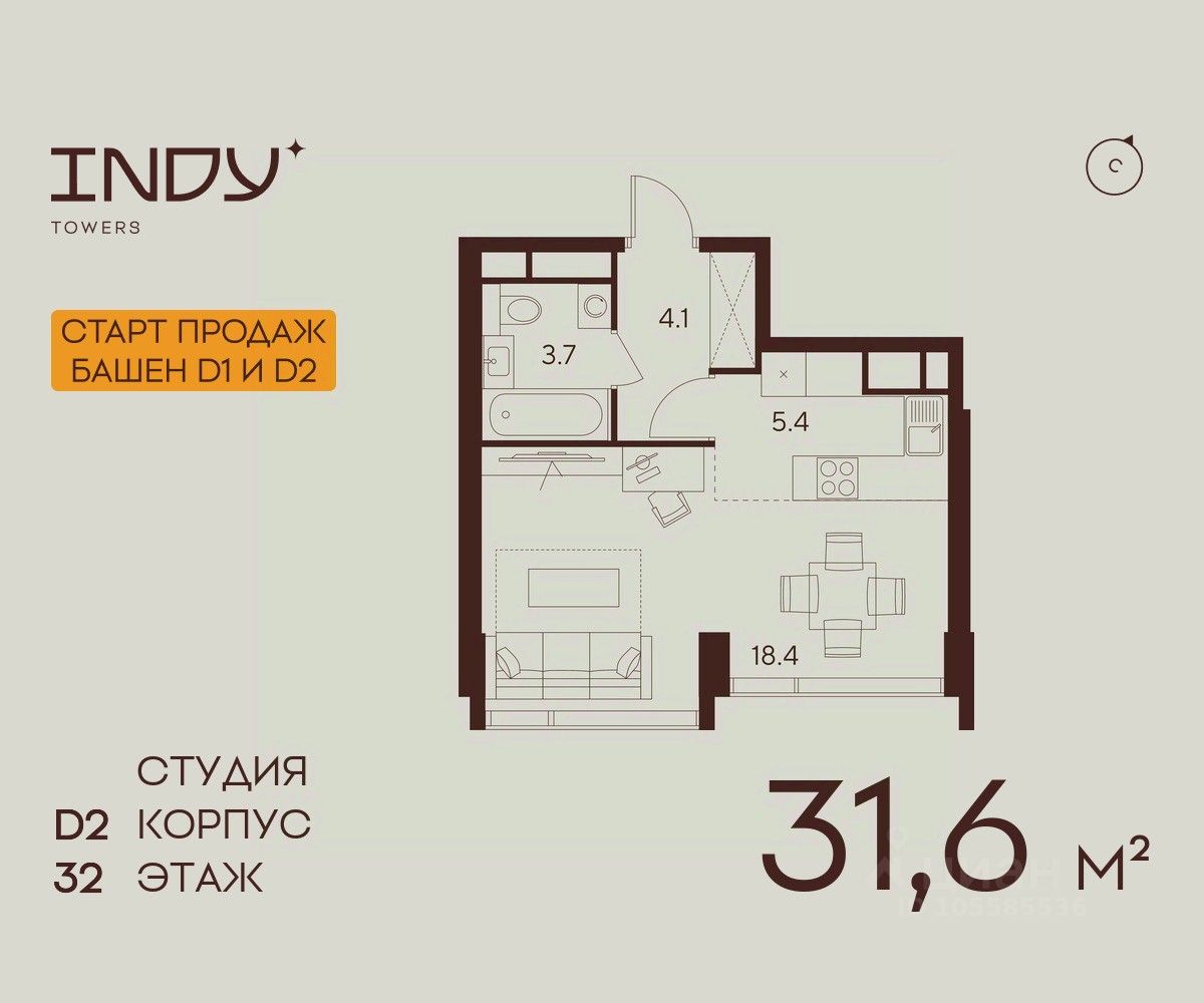 Продажа от застройщика. Продается просторная студия на 32 этаже жилого комплекса Indy Towers. Срок сдачи: 3 кв. 2029 г.