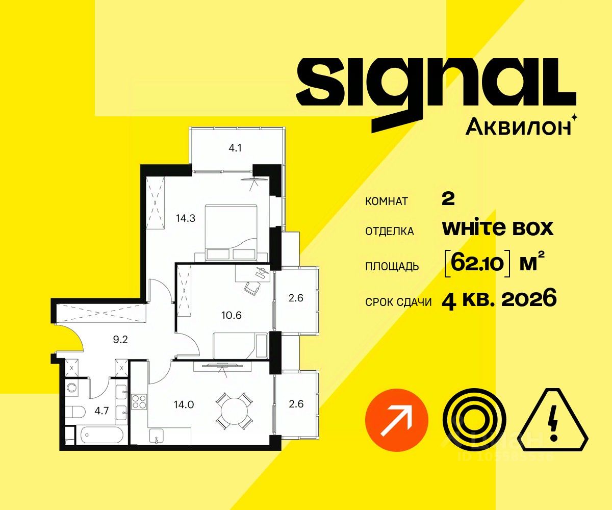 Продажа от застройщика. Продаются просторные 2-комнатные апартаменты на 21 этаже 23-этажного современного апарт-комплекса Signal. Срок сдачи: 4 кв. 2026 г.