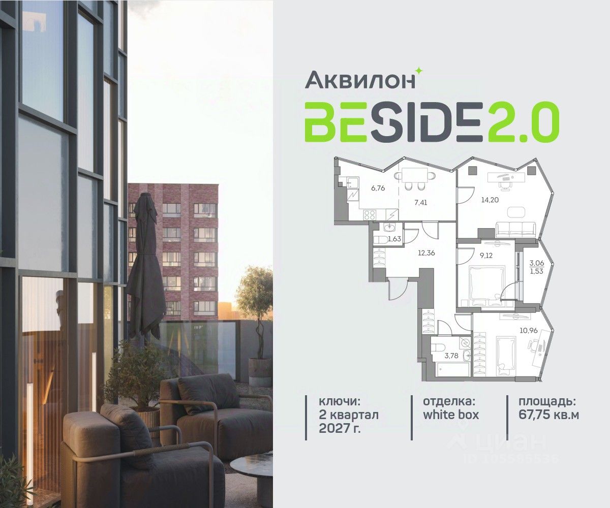 Продажа от застройщика. Продается просторная 3-комнатная квартира на 25 этаже современного жилого комплекса Beside 2.0. Вид из окон: на улицу. Срок сдачи: 2 кв. 2027 г. Квартира с лоджией.