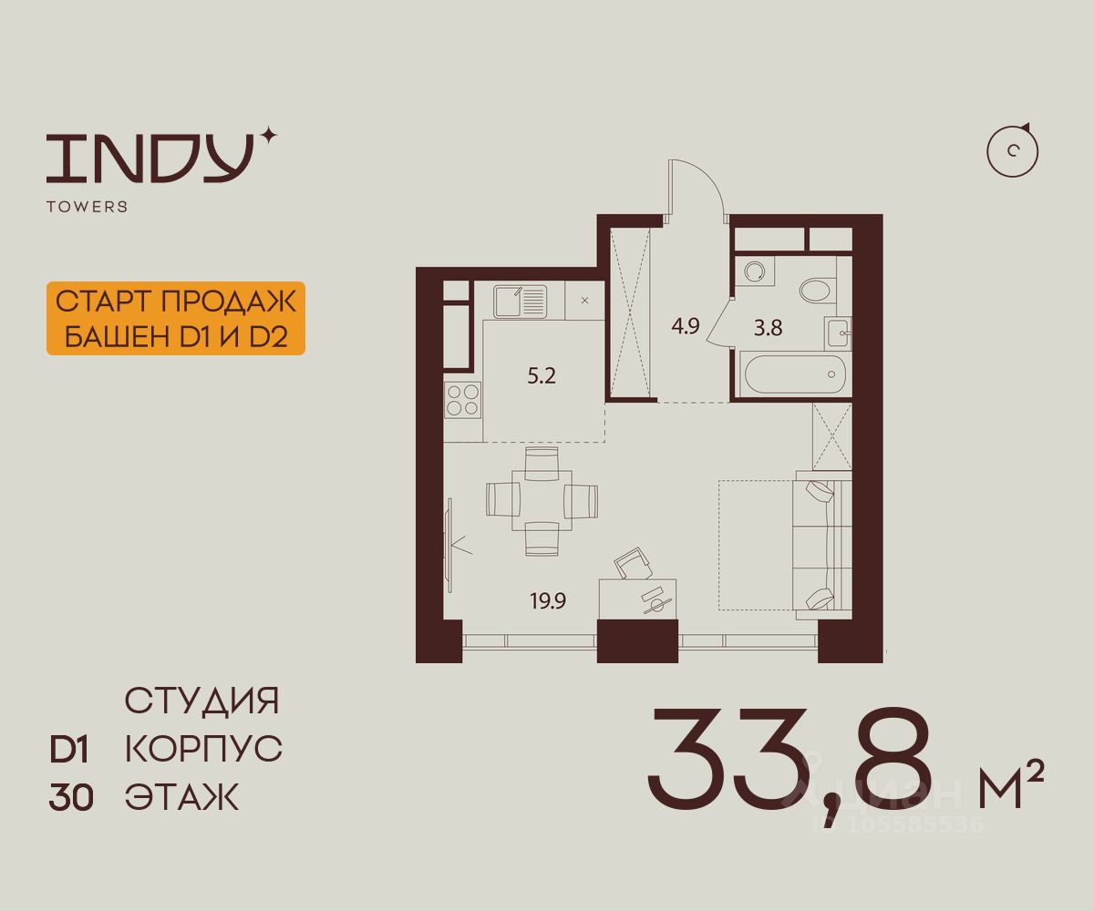 Продажа от застройщика. Продается просторная студия на 30 этаже жилого комплекса Indy Towers. Срок сдачи: 3 кв. 2029 г.