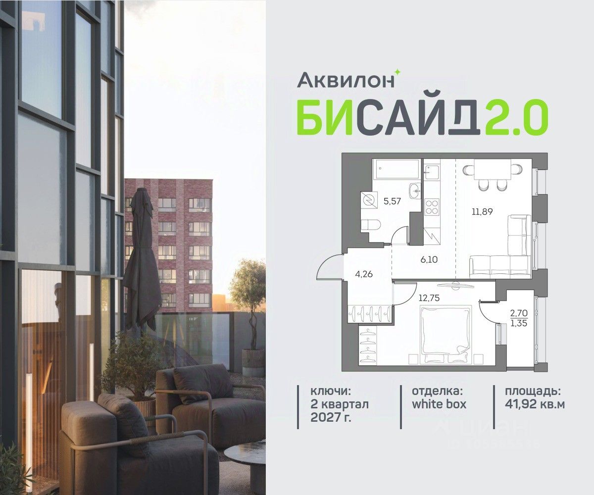 Продажа от застройщика. Продается уютная однокомнатная квартира на 15 этаже современного жилого комплекса Бисайд 2.0. Вид из окон: во двор. Срок сдачи: 2 кв. 2027 г. Квартира с лоджией.