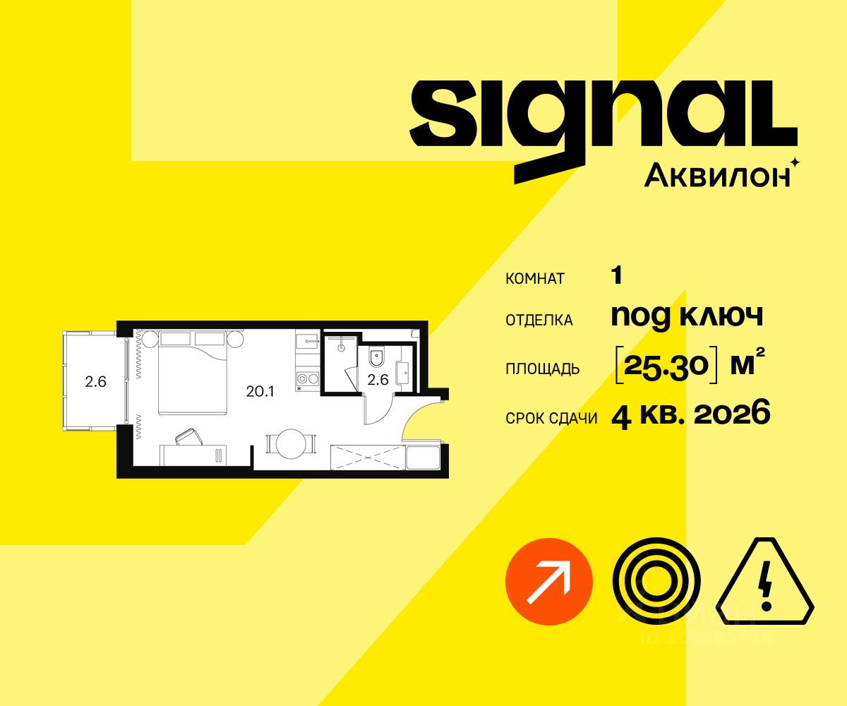 Продажа от застройщика. Продаются уютные однокомнатные апартаменты на 18 этаже 23-этажного современного апарт-комплекса Signal. Срок сдачи: 4 кв. 2026 г.