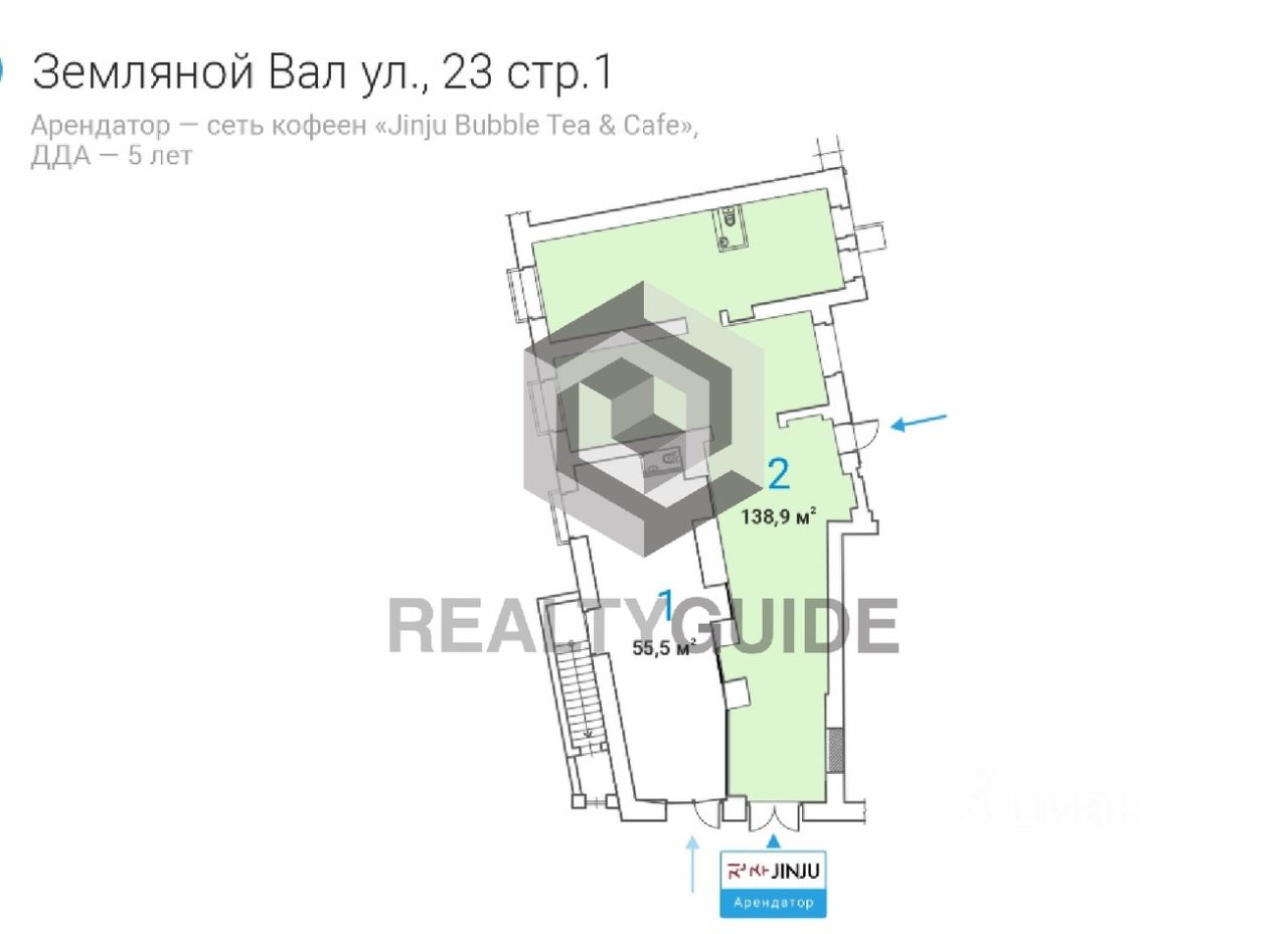 ГАБ коммерческие показатели: Помещение торгового или свободного назначения (ПСН) площадью 138,9 м2 на 1 этаже жилого здания. Арендатор Сеть кафе JINJU: долгосрочный договор аренды 5 лет. МАП 850 000 руб Годовой арендный поток 10 200 000 руб