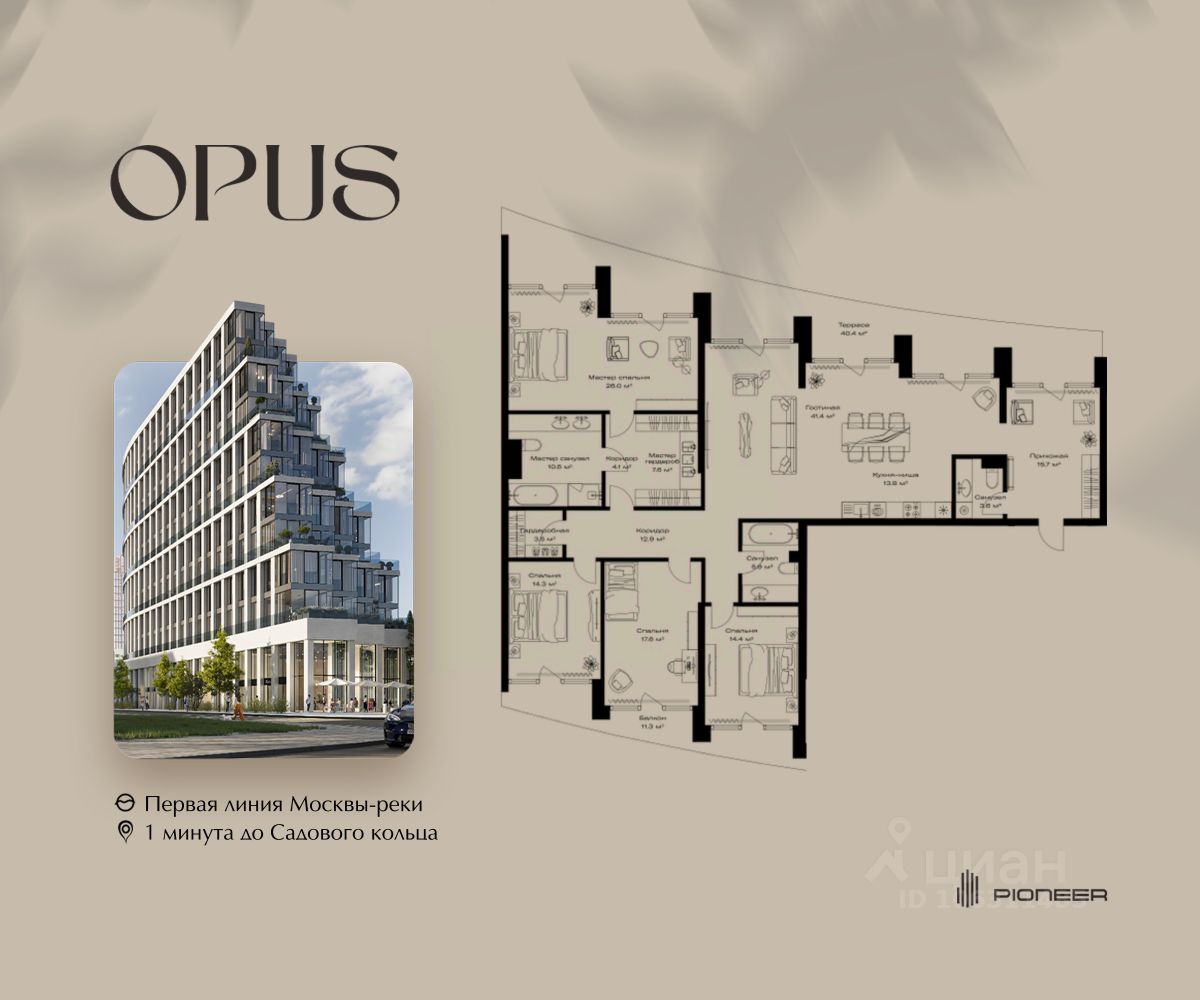 Прямая продажа от застройщика! Продаётся 4-к квартира общей площадью 206.8 кв. м. на 9-м этаже 11 этажного дома. Клубный дом OPUS - современный шедевр архитектуры от компании PIONEER, трансформирующий пространство, меняющий привычный ход вещей. Близость Москвы-реки определила его исключительную форму, вдохновлённую стихией воды. Уникальный и единственный в своём роде OPUS создаёт ощущение преображения, деликатно взаимодействуя с городской тканью. Продуманная территория с парковой атмосферой позволяет находиться в уединении в самом центре города, именно эти исключительные характеристики делают OPUS особенным. Площадь однокомнатной квартиры здесь превышает 50 квадратных метров, а отдельные трёхкомнатные решения восхищают 266-метровым простором и видами на реку. Уникальные квартиры с 8 балконами на разные стороны света, не менее эффектные решения - кабинеты и гардеробные с отдельными балконами, а ванные комнаты с панорамными окнами и собственным балконом. OPUS располагается в историческом месте с видом на Крутицкое подворье и Симоновский вал. Совсем рядом легендарное Замоскворечье - район, сохранивший камерную атмосферу старой Москвы. Локация уникальна также тем, что новые современные объекты будут соседствовать здесь с культовыми объектами культурного и исторического наследия города. За 22 года на рынке недвижимости компания PIONEER реализовала более 30 проектов. Сегодня PIONEER - девелопер премиальной недвижимости с 4 проектами класса премиум и deluxe. Продажа от застройщика. Покупка доступна в рассрочку и ипотеку. Звоните, и мы с удовольствием расскажем все подробности о проекте и условиях покупки.