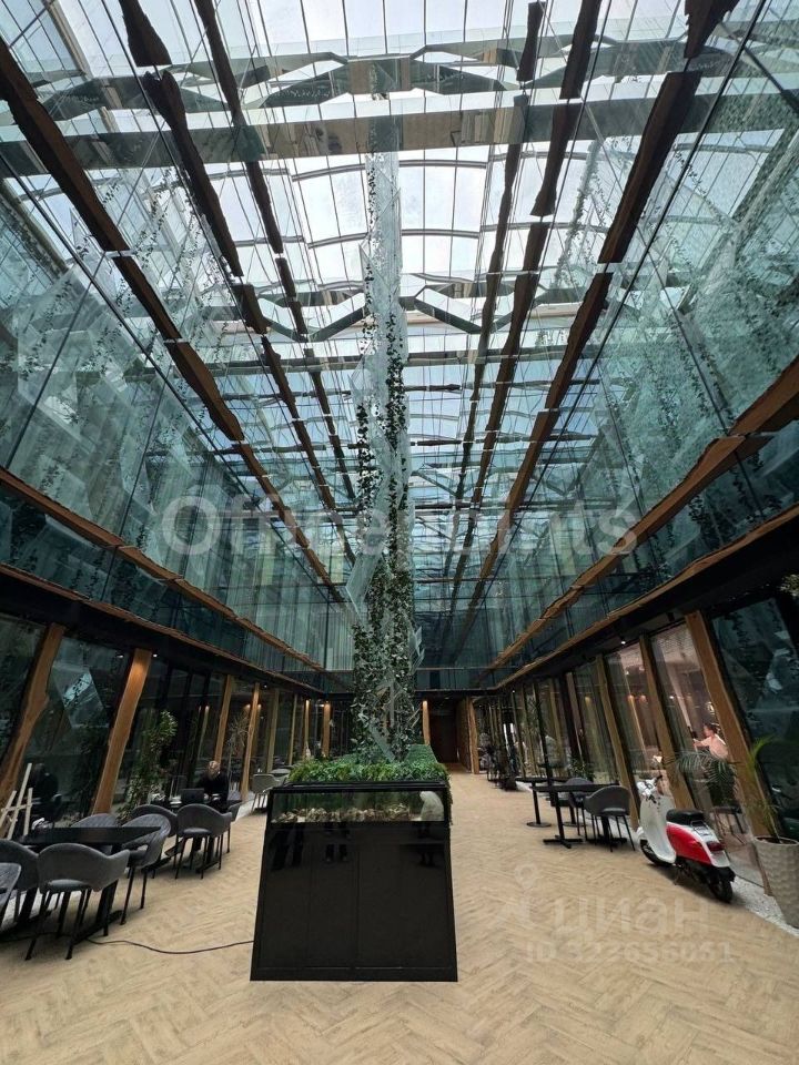 Помещения без ремонта, открытая планировка. Панорамные окна. Приточно-вытяжная система вентиляции, центральная система кондиционирования. Наземная парковка.