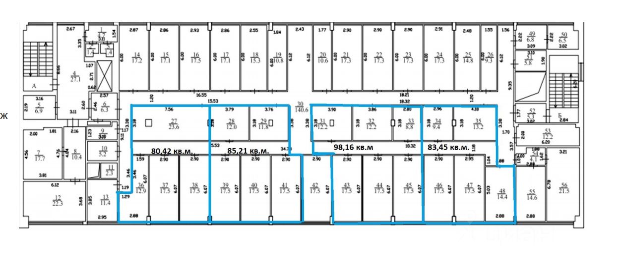 Арендуемая площадь с учетом коридорного коэффициента (12%) на 3 этаже - 109,94 кв.м Кабинетная планировка. Доступ с 8:00 до 22:00