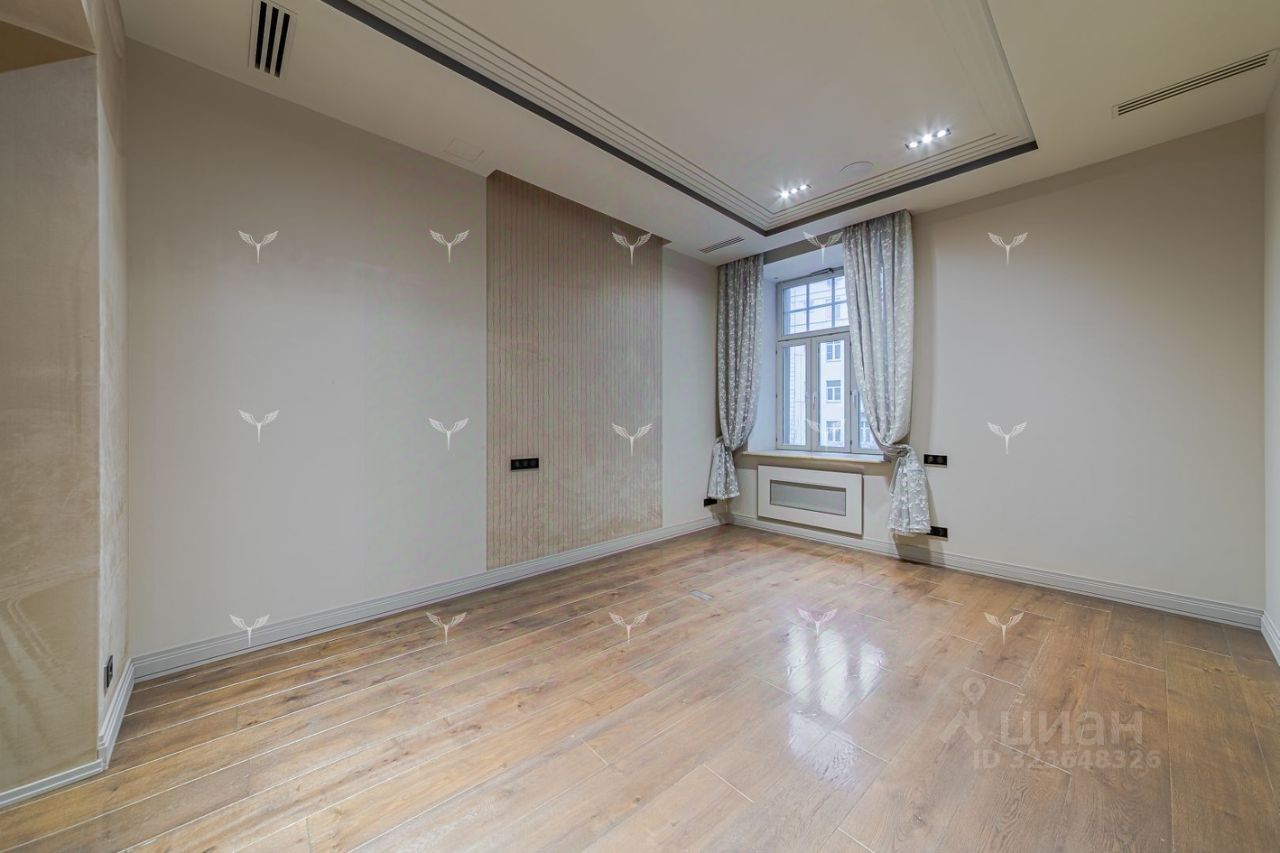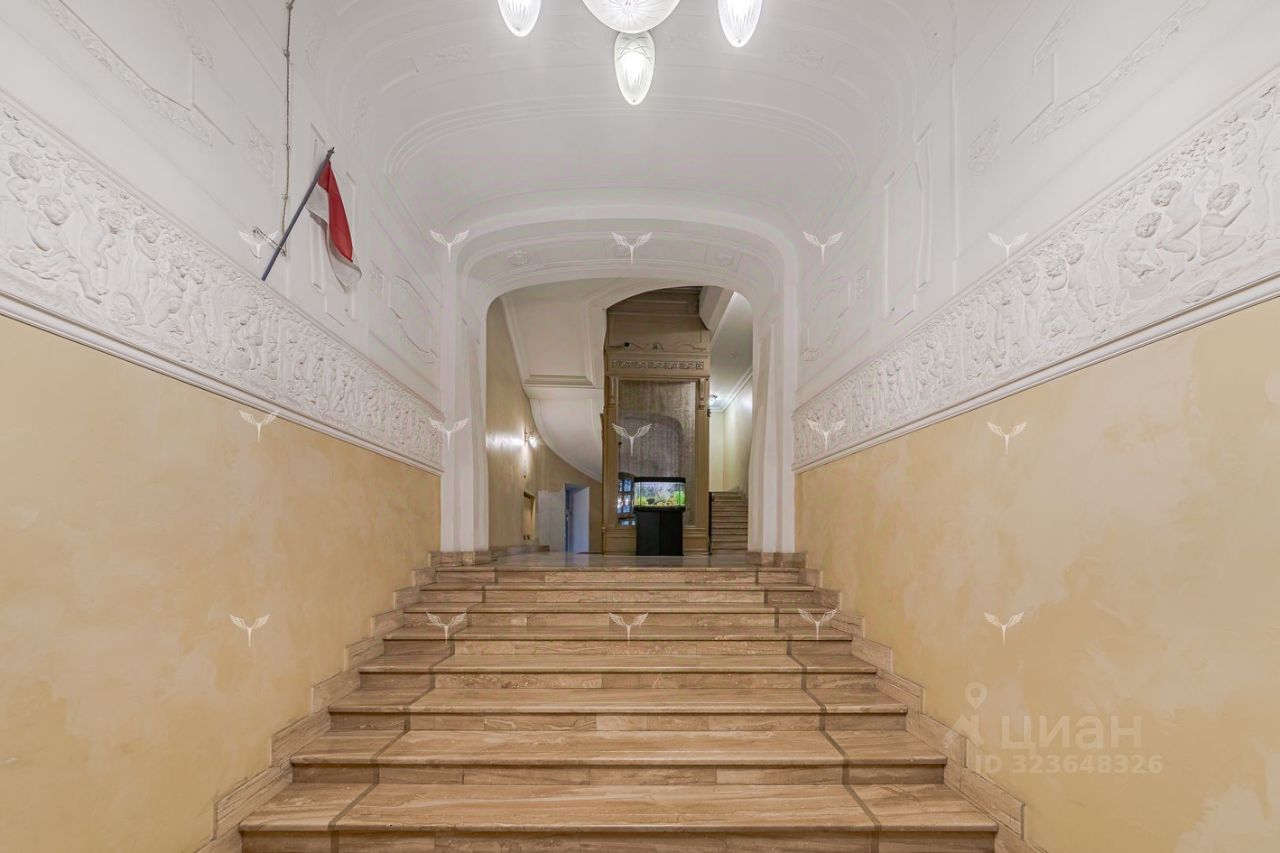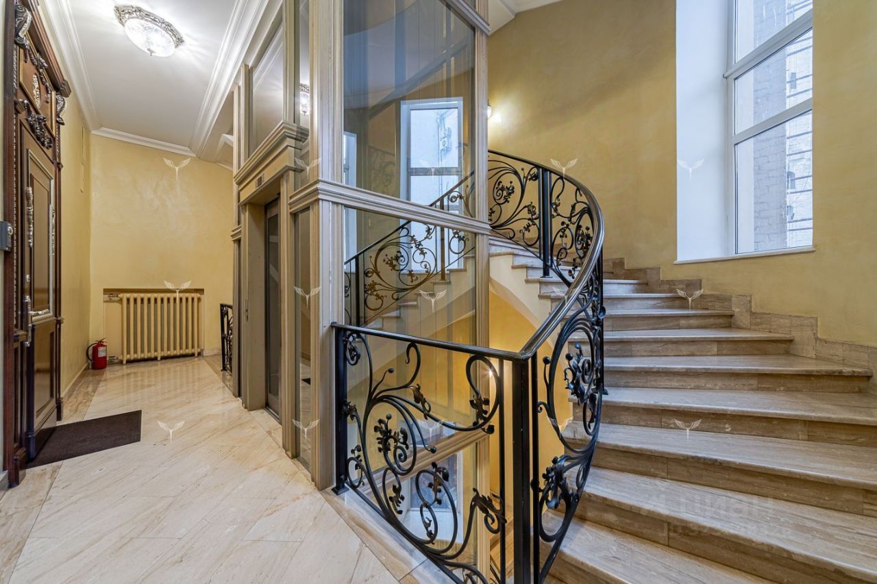 В историческом отреконструированном особняке предлагается 5-комнатная квартира с камином. Красивый парадный подъезд, в отделке входных групп использована лепнина и мрамор. Лифт. Охрана. Перекрытия Ж/Б. В доме всего 6 квартир. Планировка включает: гостиную с действующим камином, 2 спальни со своими санузлами, гостевую спальню, кабинет, большую гардеробную, гостевой санузел, кухню с профессиональным оборудованием. Современные системы приточной вентиляции и кондиционирования. Окна квартиры выходят в тихий двор. Большое количество окон и высокие потолки (3,8 метра) наполняют квартиру светом и пространством.
