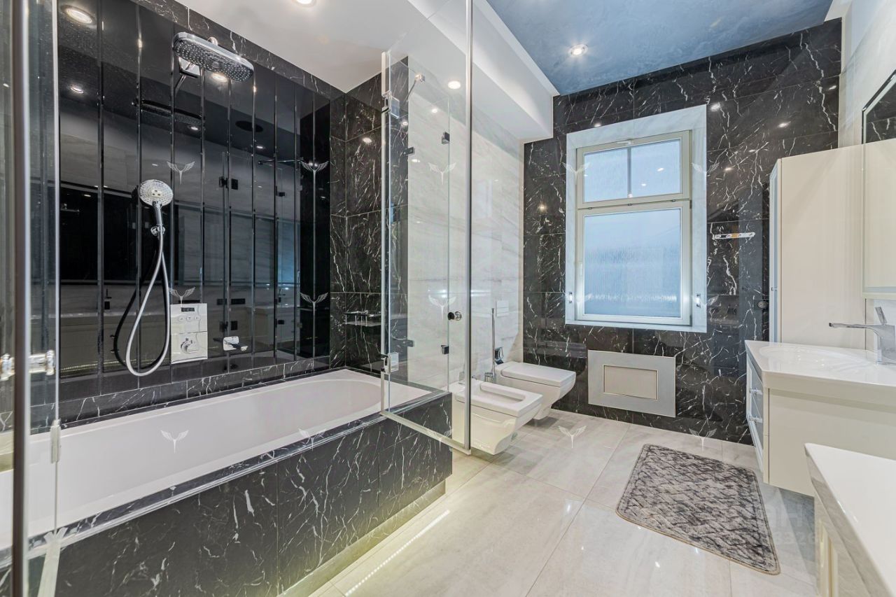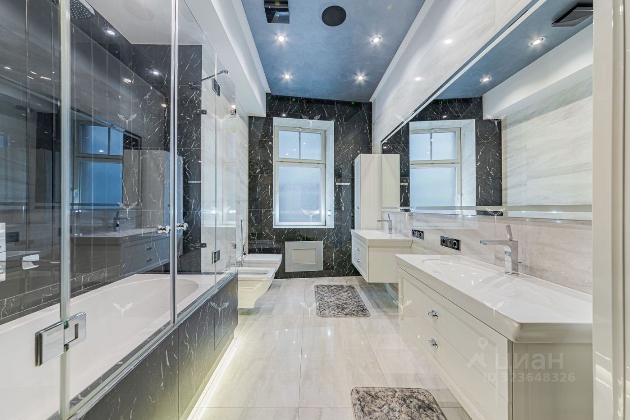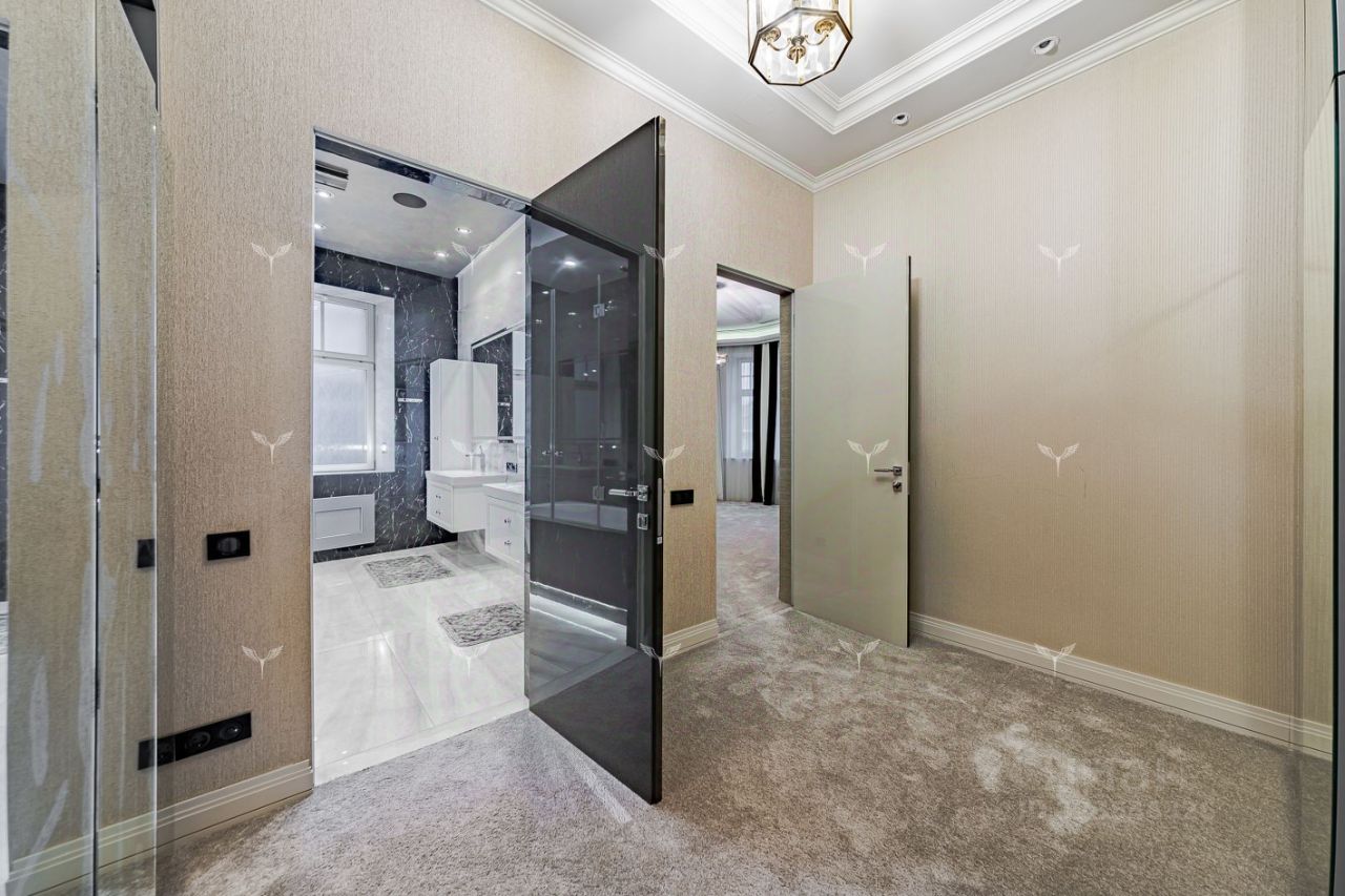 В историческом отреконструированном особняке предлагается 5-комнатная квартира с камином. Красивый парадный подъезд, в отделке входных групп использована лепнина и мрамор. Лифт. Охрана. Перекрытия Ж/Б. В доме всего 6 квартир. Планировка включает: гостиную с действующим камином, 2 спальни со своими санузлами, гостевую спальню, кабинет, большую гардеробную, гостевой санузел, кухню с профессиональным оборудованием. Современные системы приточной вентиляции и кондиционирования. Окна квартиры выходят в тихий двор. Большое количество окон и высокие потолки (3,8 метра) наполняют квартиру светом и пространством.