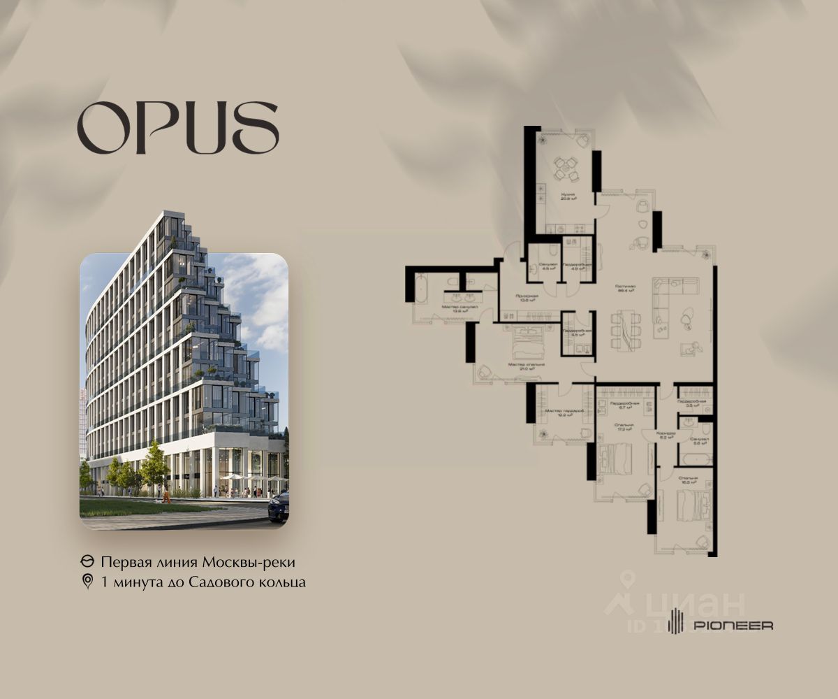 Прямая продажа от застройщика! Продаётся 3-к квартира общей площадью 217 кв. м. на 10-м этаже 11 этажного дома. Клубный дом OPUS - современный шедевр архитектуры от компании PIONEER, трансформирующий пространство, меняющий привычный ход вещей. Близость Москвы-реки определила его исключительную форму, вдохновлённую стихией воды. Уникальный и единственный в своём роде OPUS создаёт ощущение преображения, деликатно взаимодействуя с городской тканью. Продуманная территория с парковой атмосферой позволяет находиться в уединении в самом центре города, именно эти исключительные характеристики делают OPUS особенным. Площадь однокомнатной квартиры здесь превышает 50 квадратных метров, а отдельные трёхкомнатные решения восхищают 266-метровым простором и видами на реку.