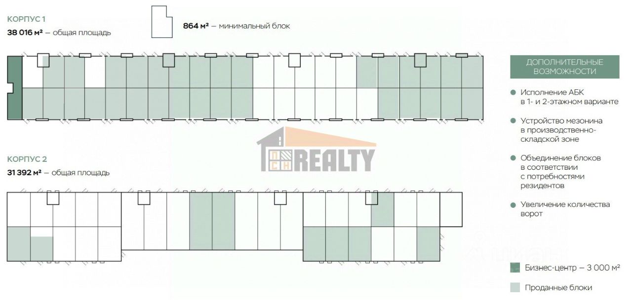 Возможность организации встроенных помещений административно-бытового назначения.