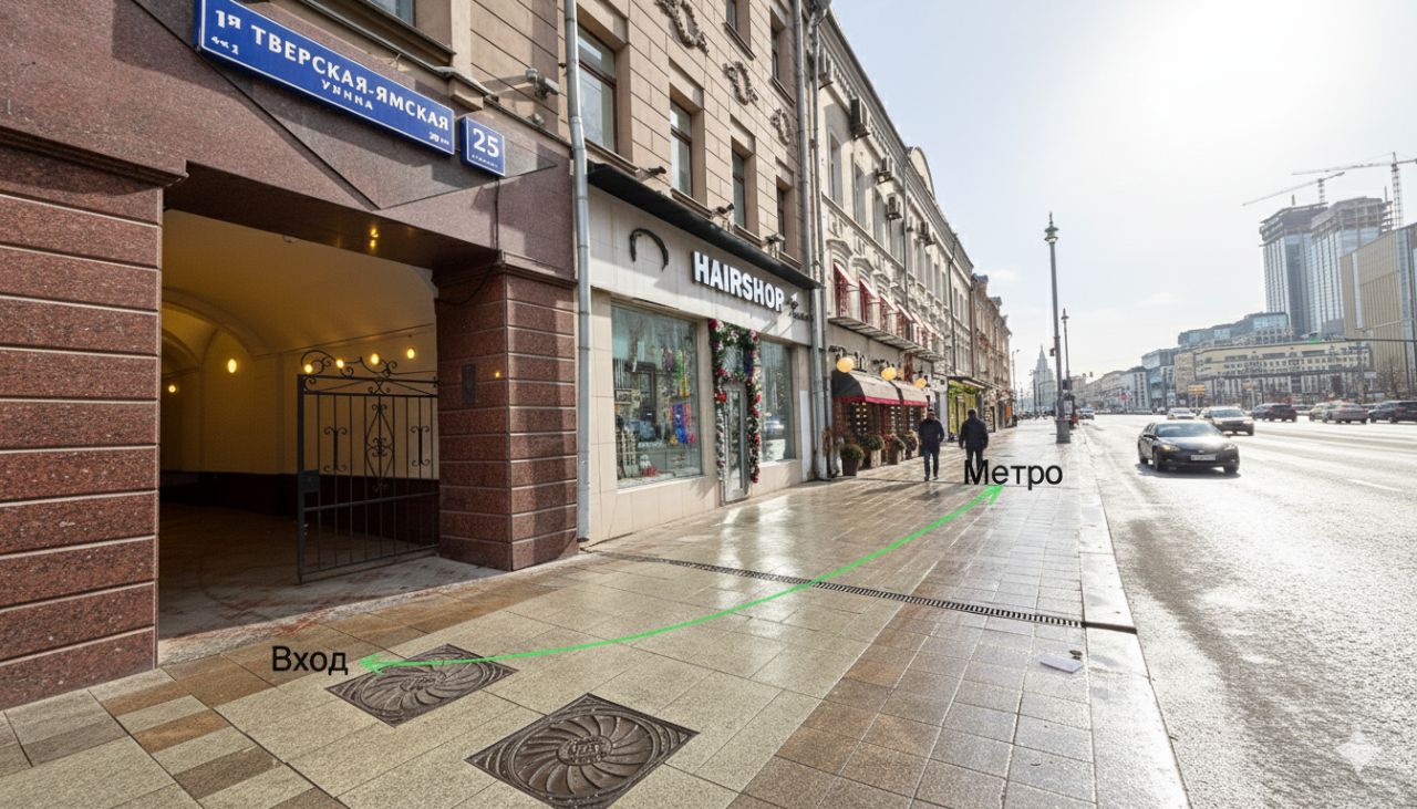 3 минуты пешком от метро Белорусская — центр деловой и модной активности столицы.