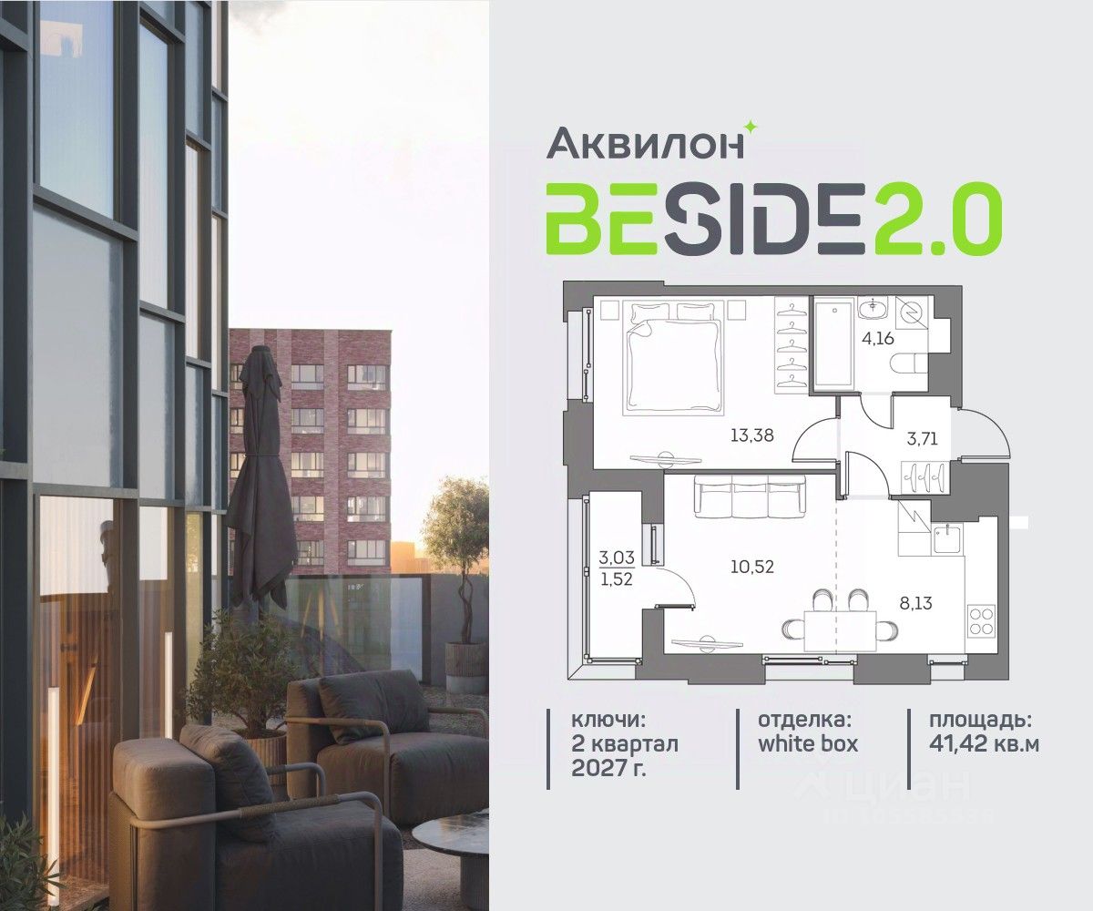 Продажа от застройщика. Продается уютная однокомнатная квартира на 13 этаже современного жилого комплекса Beside 2.0. Вид из окон: во двор. Срок сдачи: 2 кв. 2027 г. Квартира с лоджией.