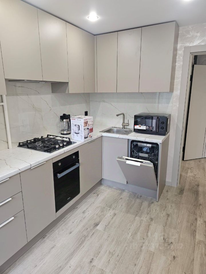 Уютная квартира после шикарного капитального ремонта с новой кухней (Кухонный двор): со встроенной стиральной машиной, посудомоечной машиной, новый холодильник, новая СВЧ печь, новый чайник, стол, стулья, новой мебелью АСКОНА: двуспальная кровать, матрас и прикроватные тумбочки, техникой: телевизор, кондиционер. В с/у подогрев полов, зеркало с подсветкой, электрический полотенцесушитель. В комнате имеется стеклянный шкаф-купе во всю стену. Во всей квартире заменены окна, батареи и трубы в шахте.