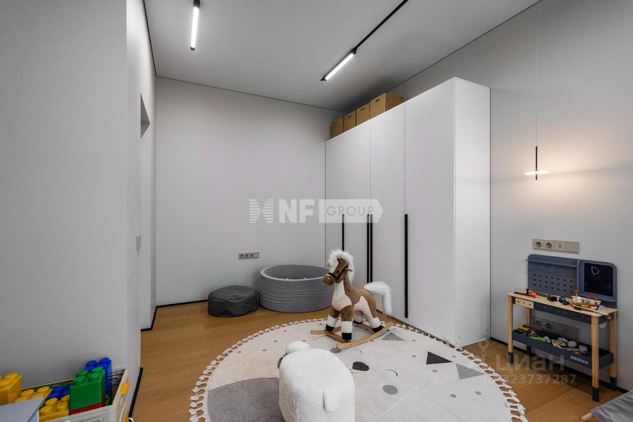 2 этаж: мастер-блок с гардеробом, санузлом и балконом, две детские комнаты, постирочная, детский санузел, кабинет.