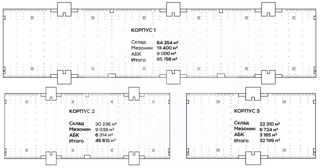 Общая площадь: 90 000 кв. м (включая офис и мезонин) (два корпуса)