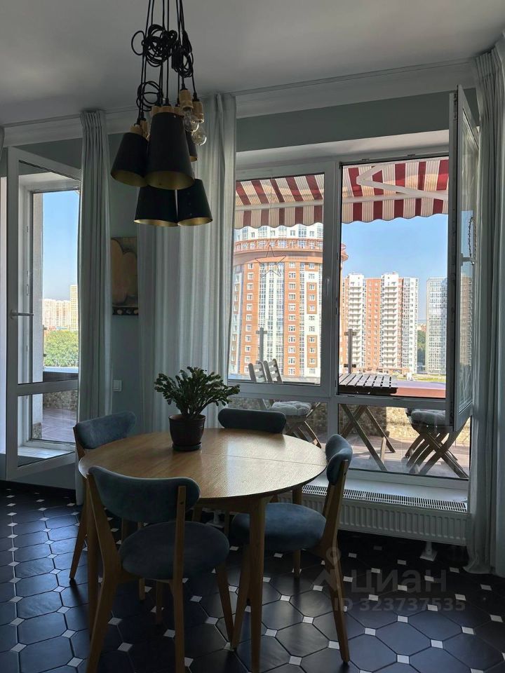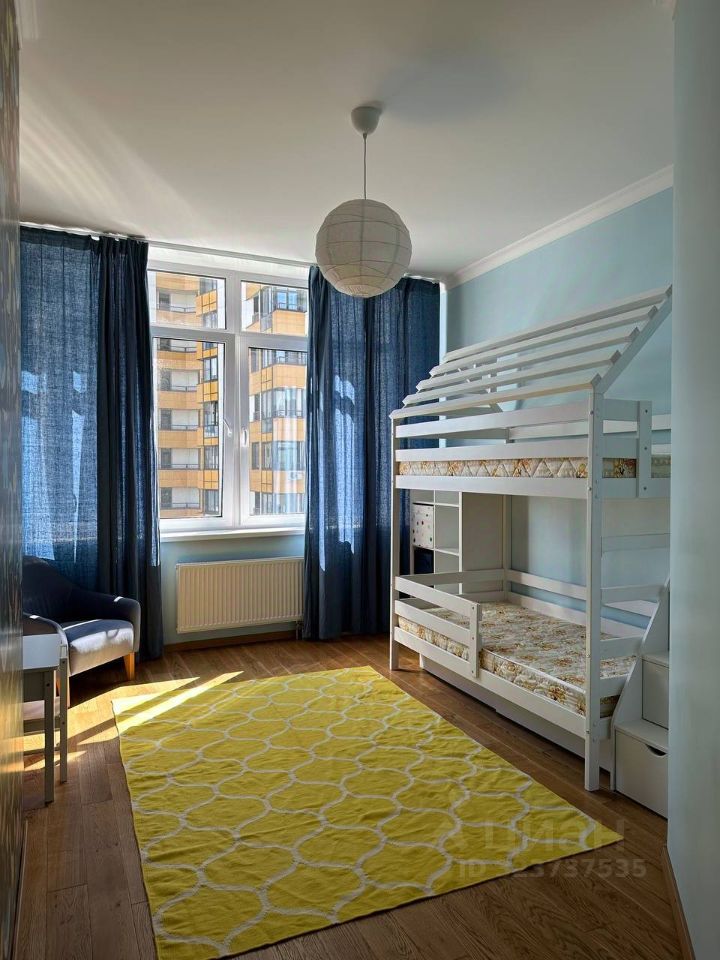 В Химках, в ЖК ''Правый берег'', на 7-м этаже предлагается просторная и уютная квартира с дизайнерским ремонтом. В квартире есть всё необходимое для комфортной жизни: спальня, две детские комнаты, гостиная, кухня-столовая, кабинет и два санузла. Также в квартире есть гардеробная и две веранды (террасы), откуда открывается шикарный вид. Ванная комната оборудована как ванной, так и душевой кабиной, что делает её удобной для всех членов семьи.