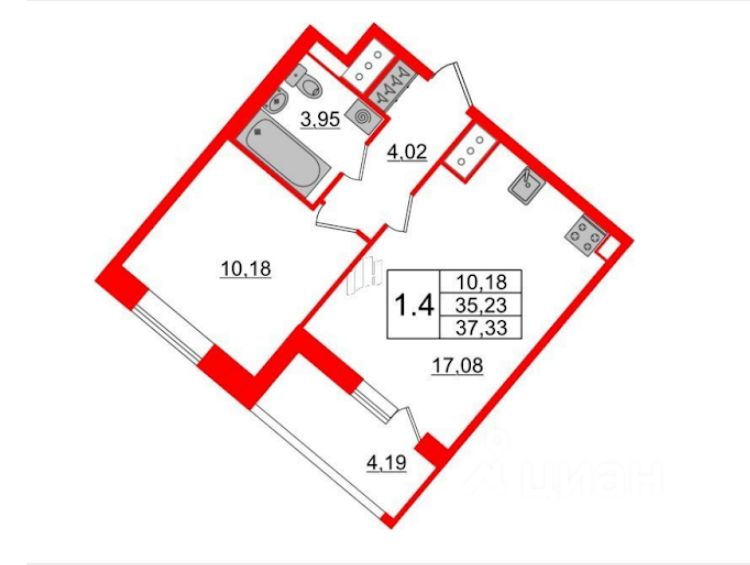 Преимущества квартиры: -Общая площадь 37,33 м² -Кухня 17,8 м² — большое пространство для семейных ужинов и встреч с друзьями -Жилая площадь 10,8 м², комнаты изолированные -Есть лоджия -Высота потолков 2,77 м -Совмещённый санузел -19 этаж из 21 -Чистовая отделка NORD LINE