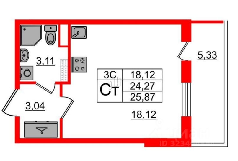 Общая площадь25,9 м2