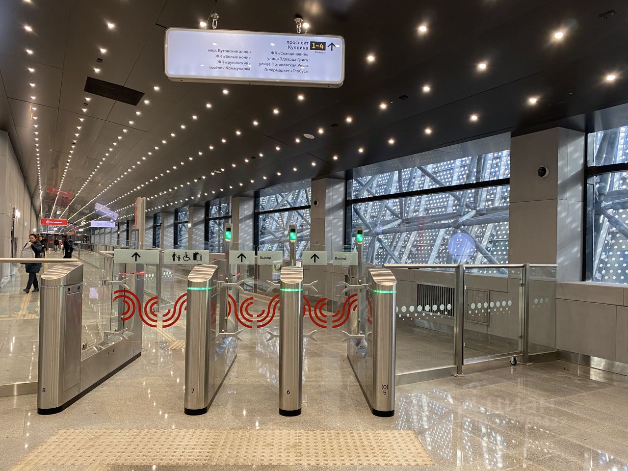 Панорамные окна, есть окно/фрамуга для выдачи товаров.